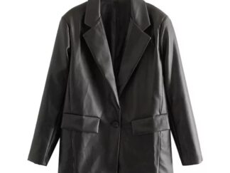 BBWMWOMAN Damski krótki płaszcz z eko skóry