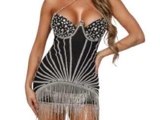 Damska sukienka taneczna mini z frędzlami z kryształków