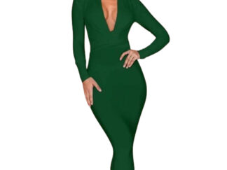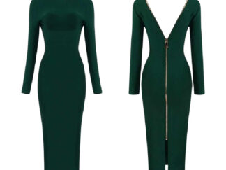 Bandażowa zielona sukienka midi z długim rękawem