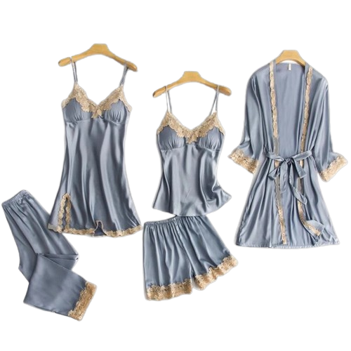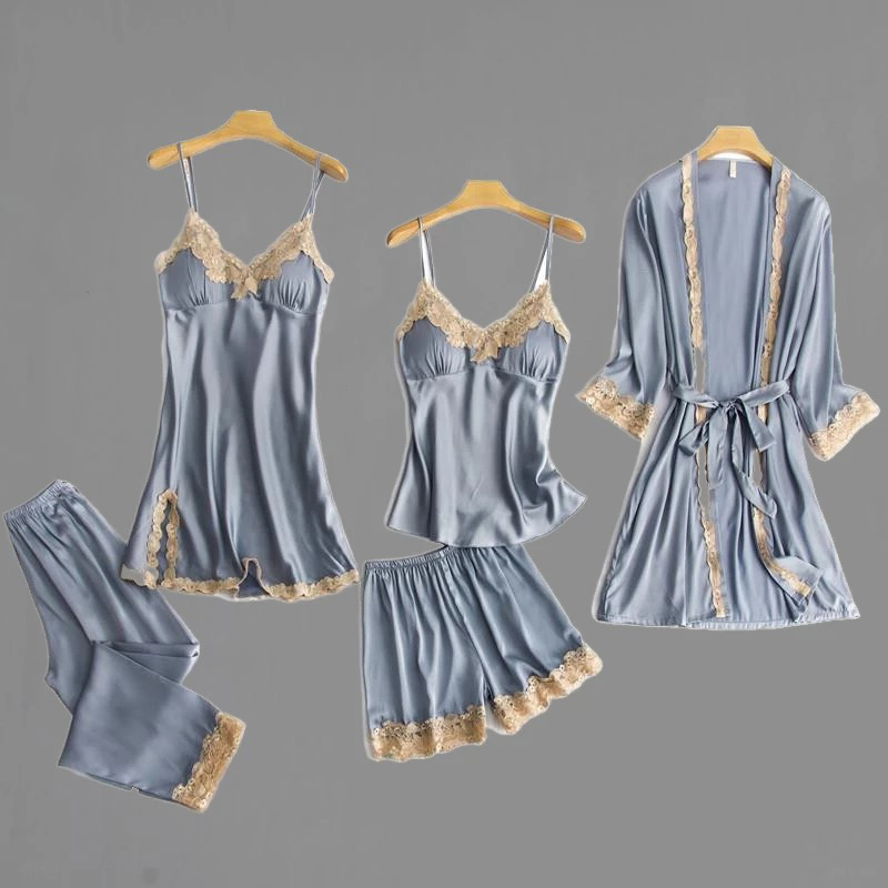 5-elementowy komplet damski piżamowy satynowej z koronką