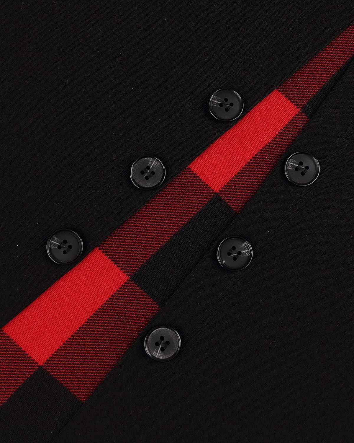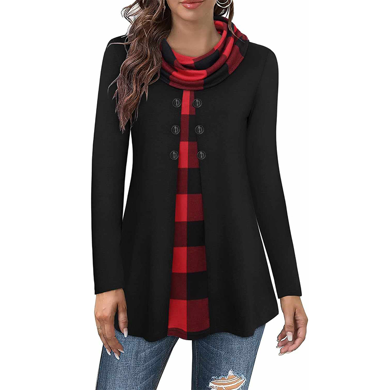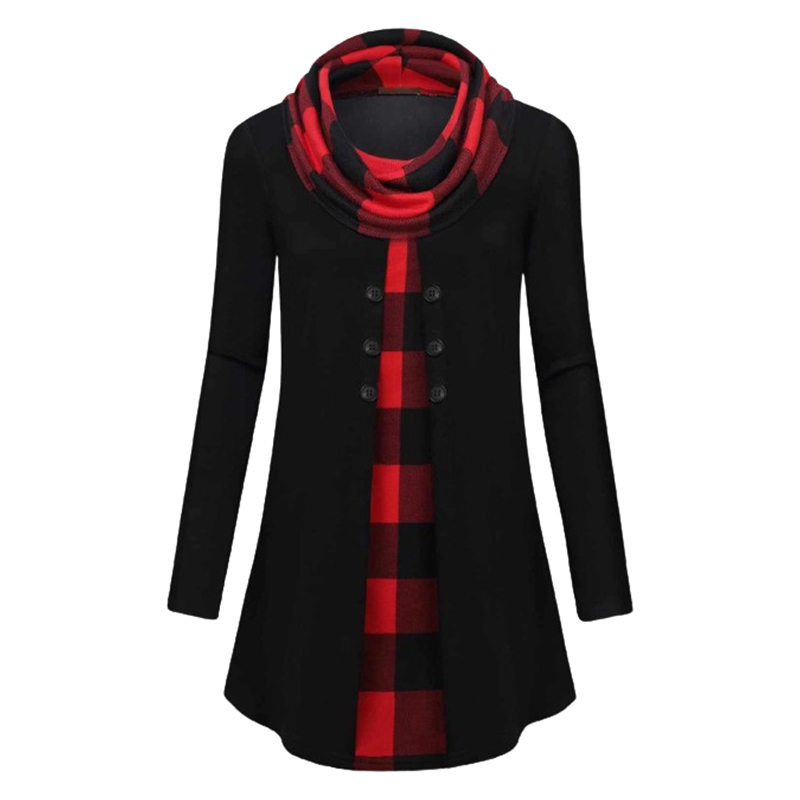 Kolorystyka w kratkę tuniki z długim rękawem z kołnierzem szalowym wygląda jak szalik, który nosisz do kardiganu. Ozdoba guzikowa na klatce piersiowej. Jedyne w swoim rodzaju wzornictwo swetrów tuniki pozwala uniknąć obaw o dopasowanie.