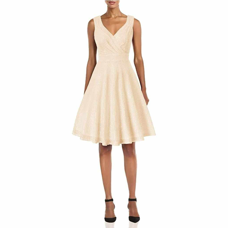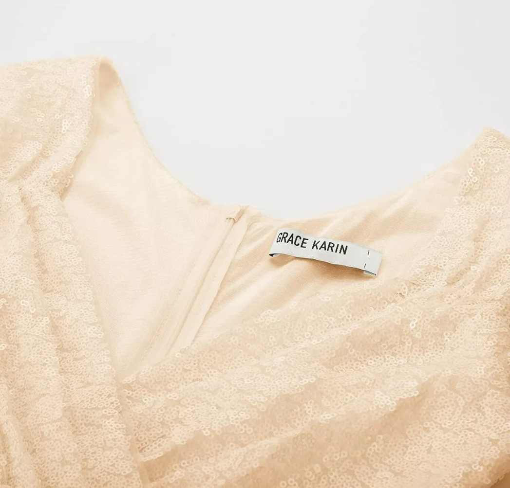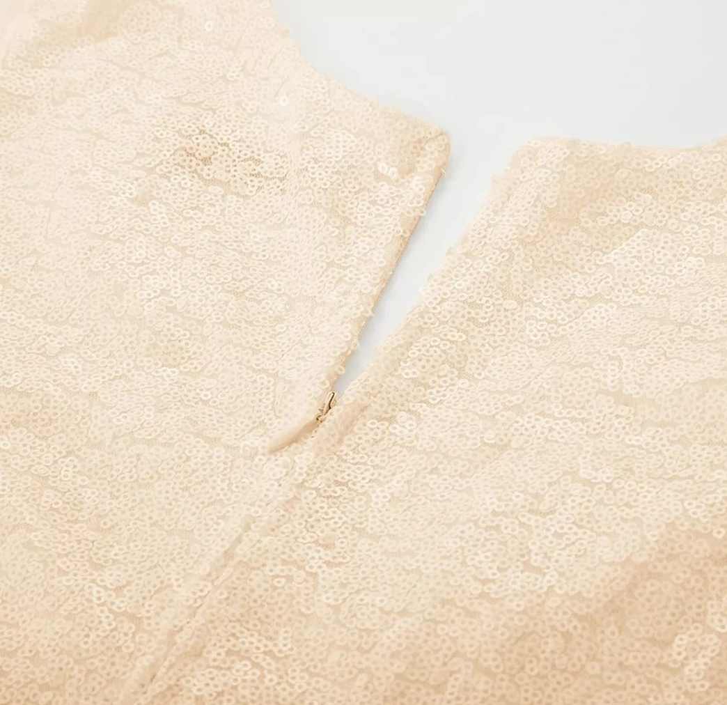 Rozkloszowana cekinowa sukienka w kolorze jasno brzoskwiniowym