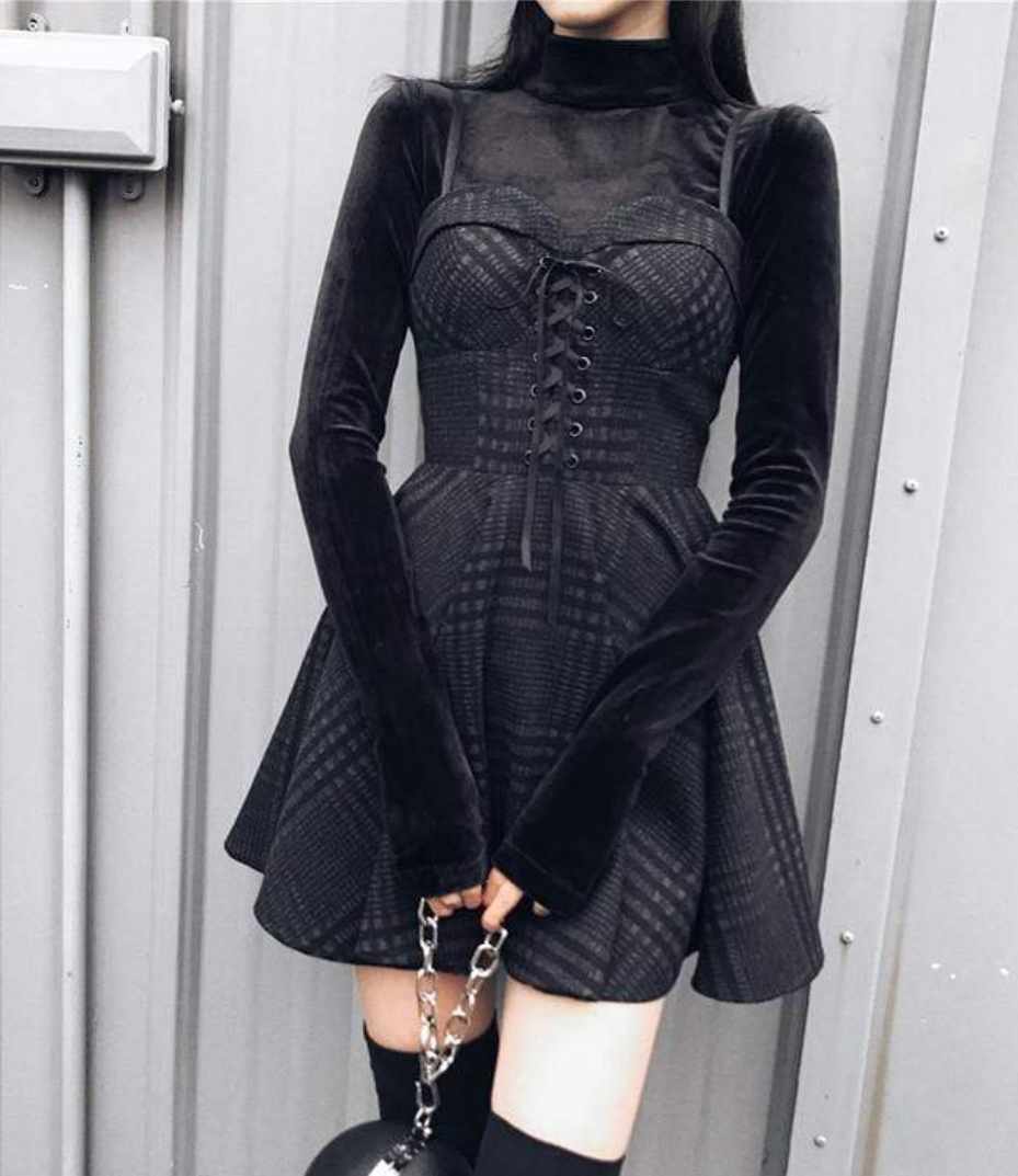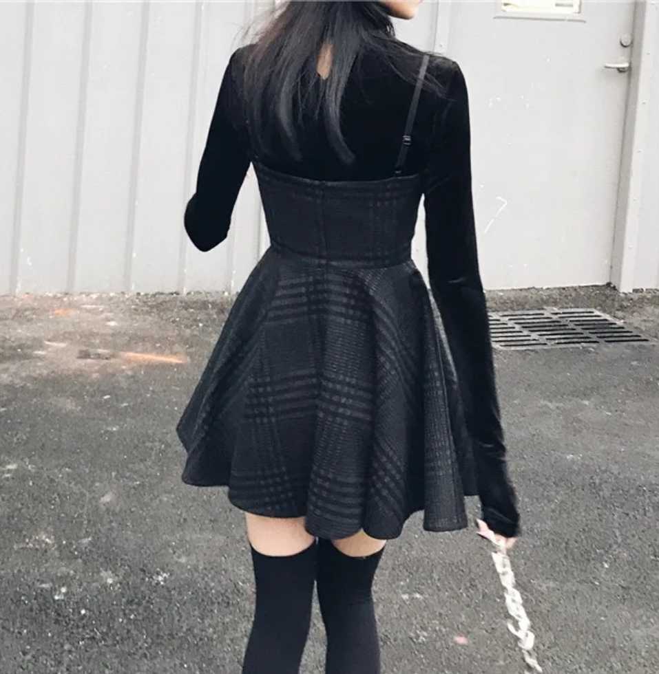 Dzianinowa gotycka sukienka w kratę w stylu punk rozmiar S/M