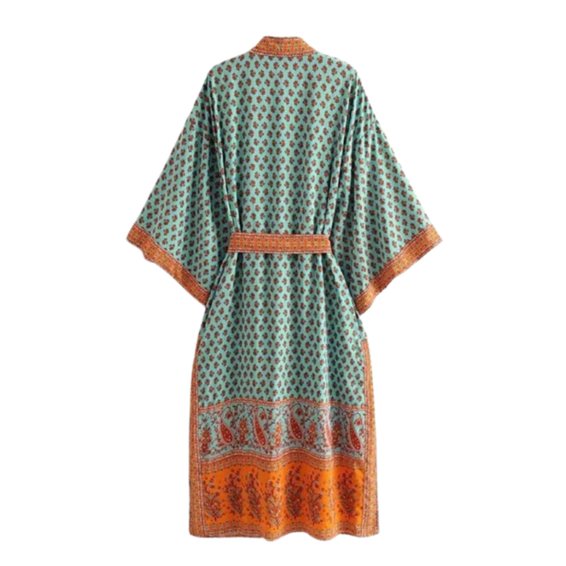 Damska wzorzysta letnia sukienka w stylu kimono rozmiar L