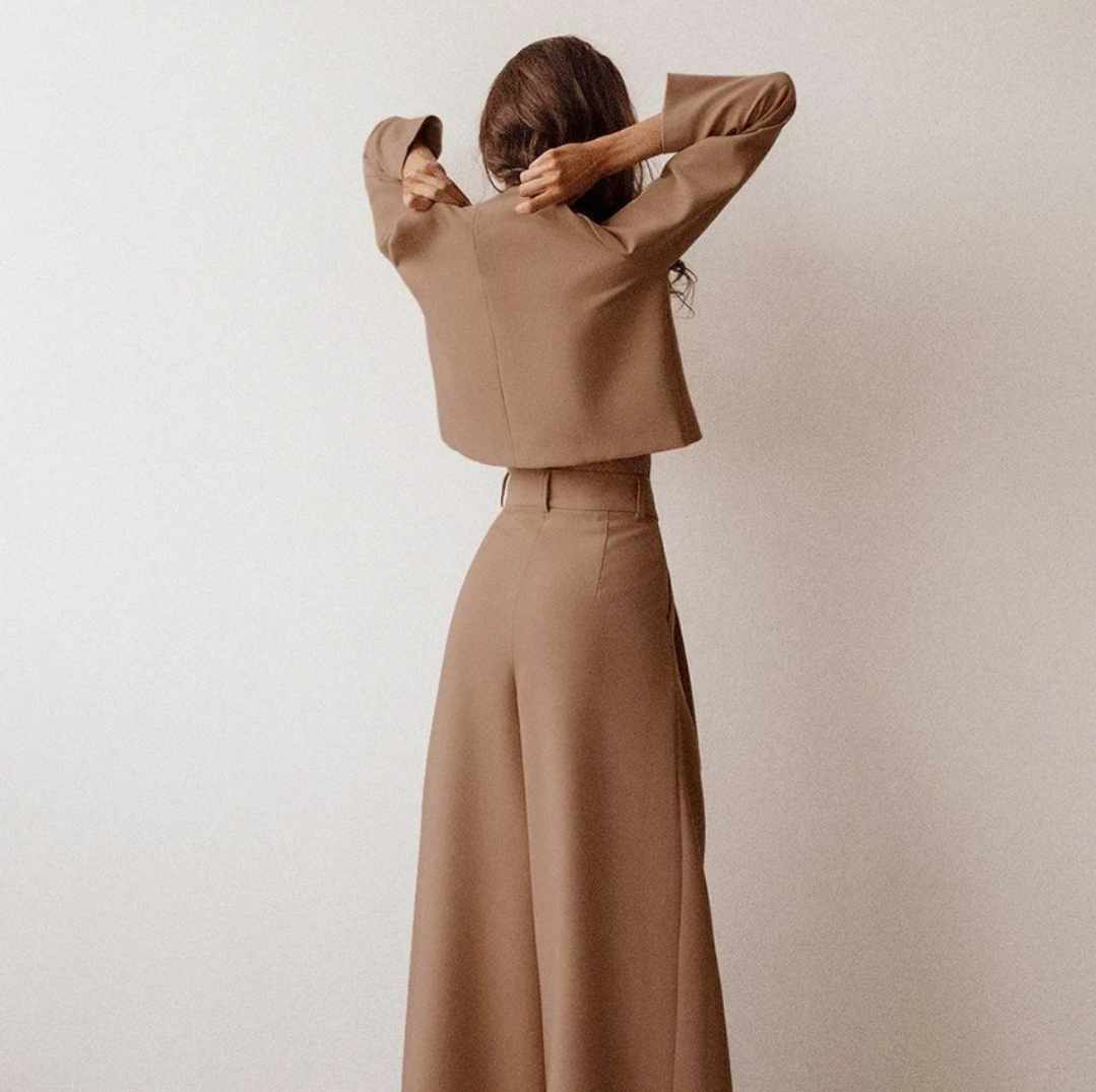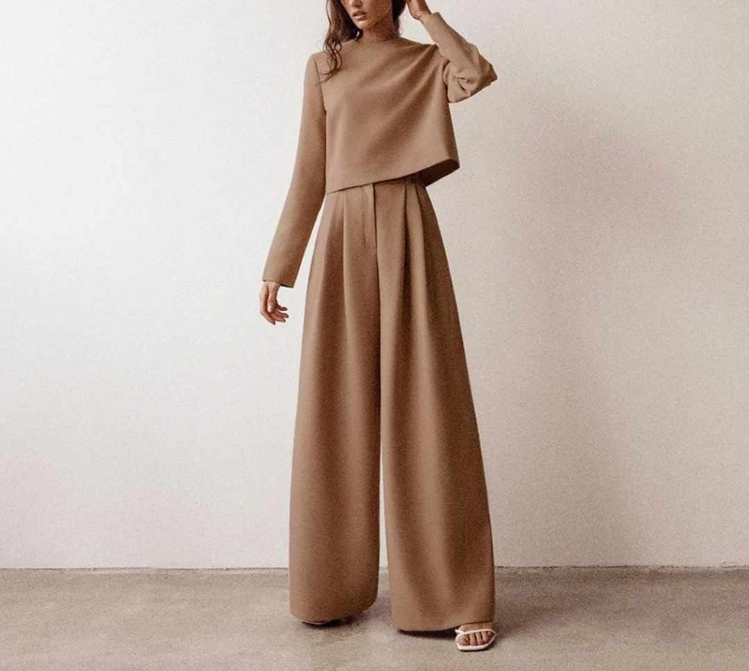 Komplet: Bluzka z długim rękawem + Spodnie szerokie z wysokim stanem
