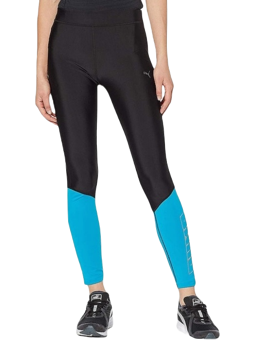 Damskie legginsy w kolorze czarnym Puma o długości 7/8, które zatrzymują się nad kostką. Krój z wysokim stanem, który sięga do pępka i zapewnia osłonę podczas aktywności sportowej.
