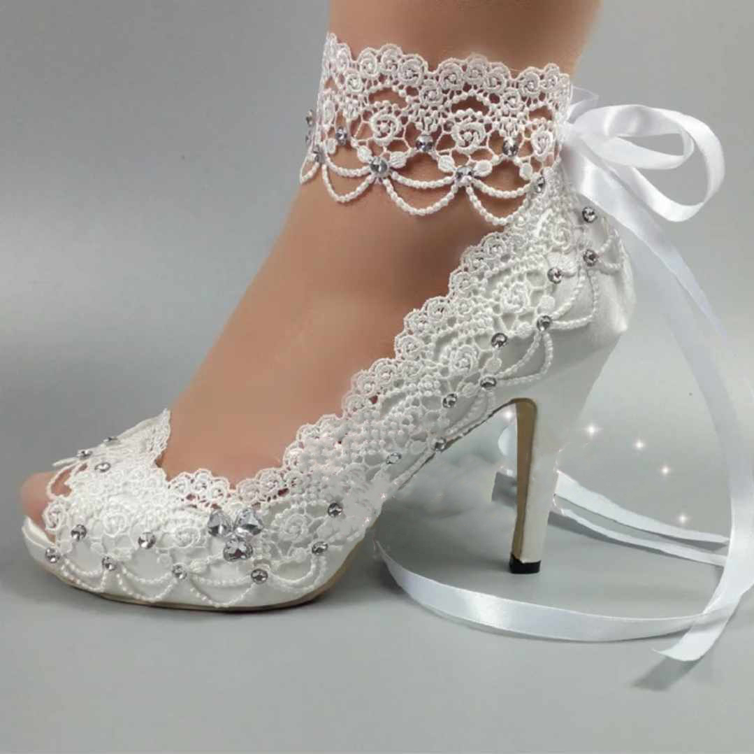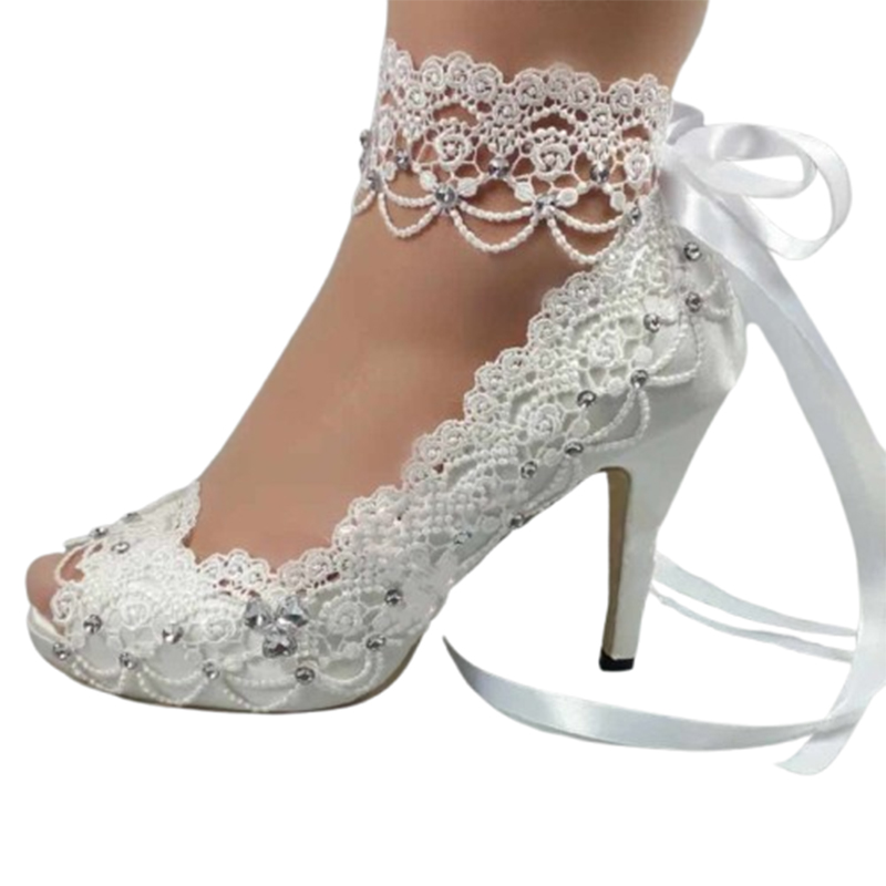 Damskie satynowe czółenka ślubne ze zdobieniami