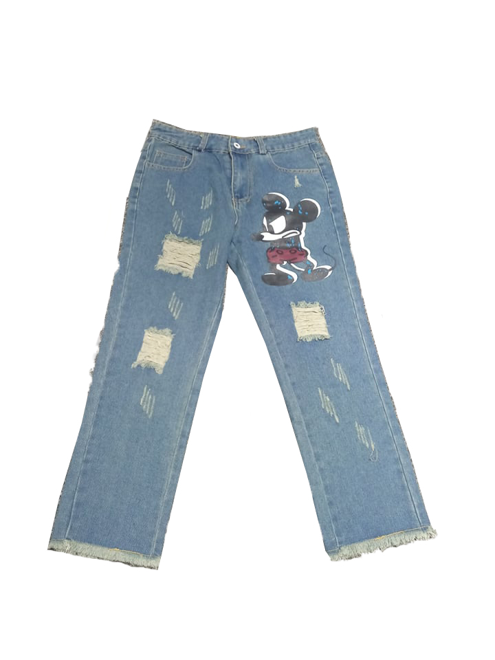 - Dekoracja: Nadruk Myszka Miki , przetarcia, dziury