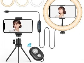 - Lampa pierścieniowa o mocy 60W i średnicy lampy 10,2cali z możliwością zmiany barwy światła