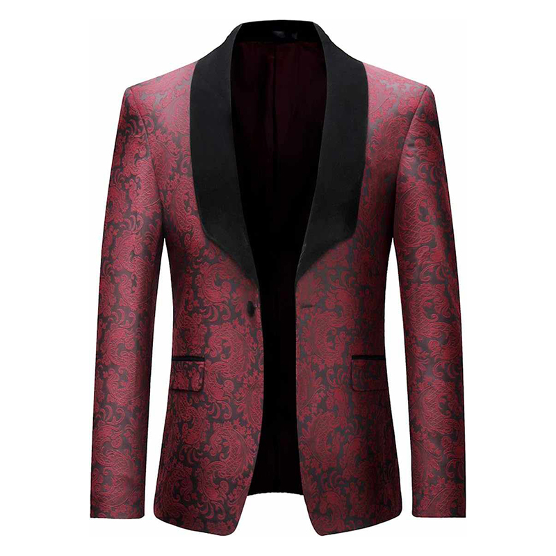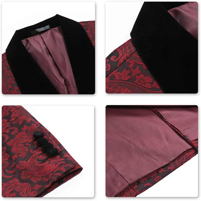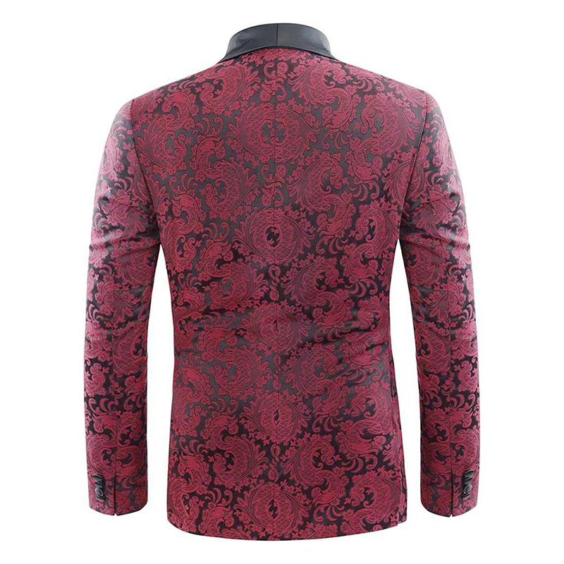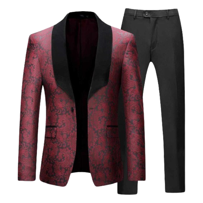 Elegancki dwuczęściowy bordowo-czarny garnitur męski wzorzysta marynarka