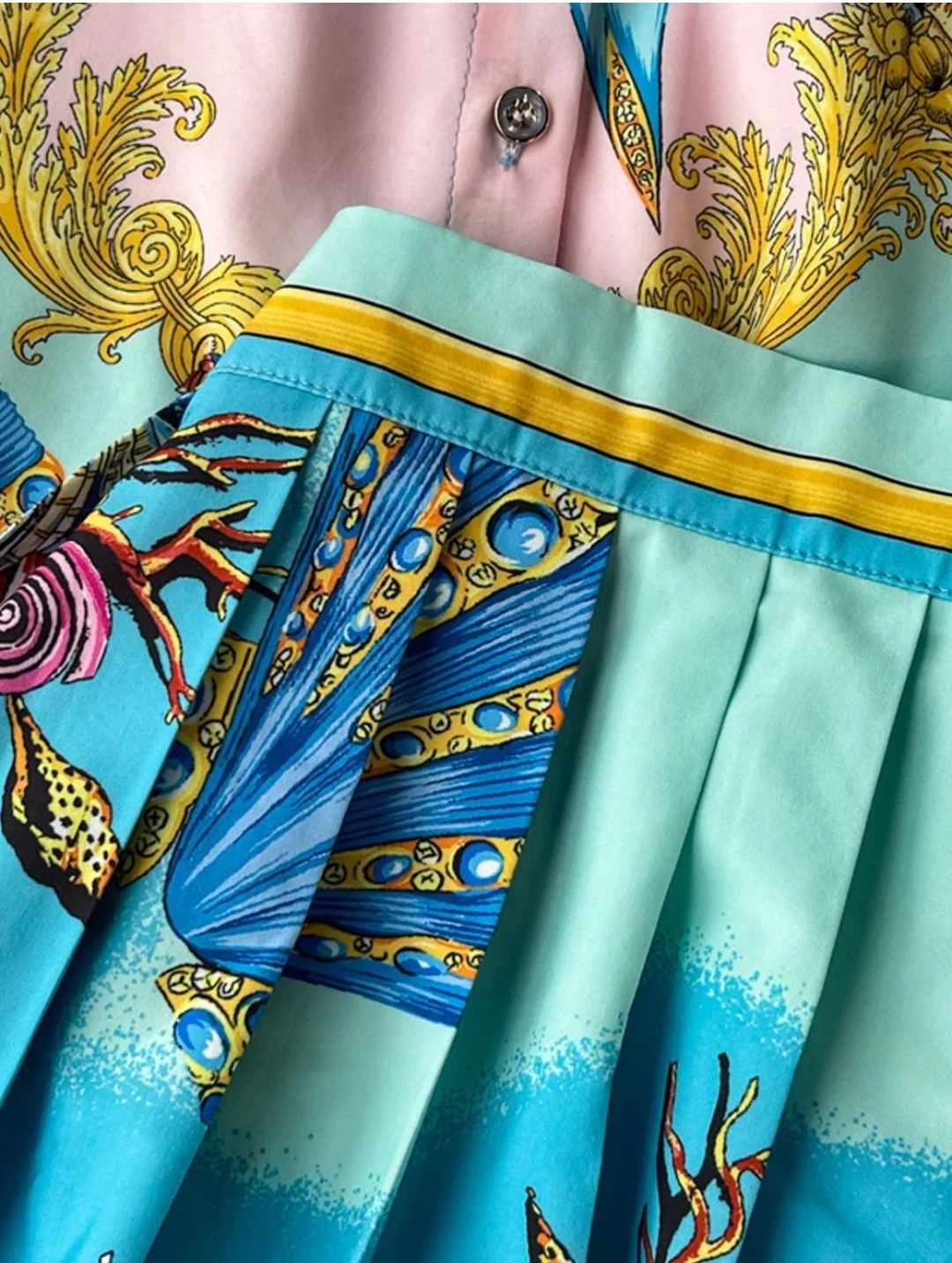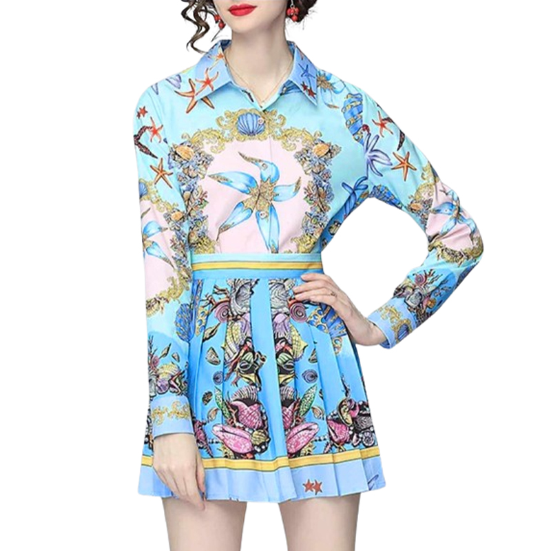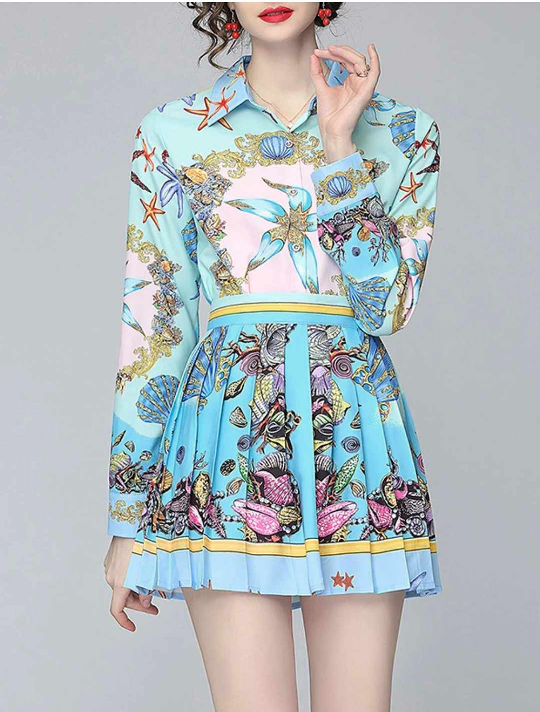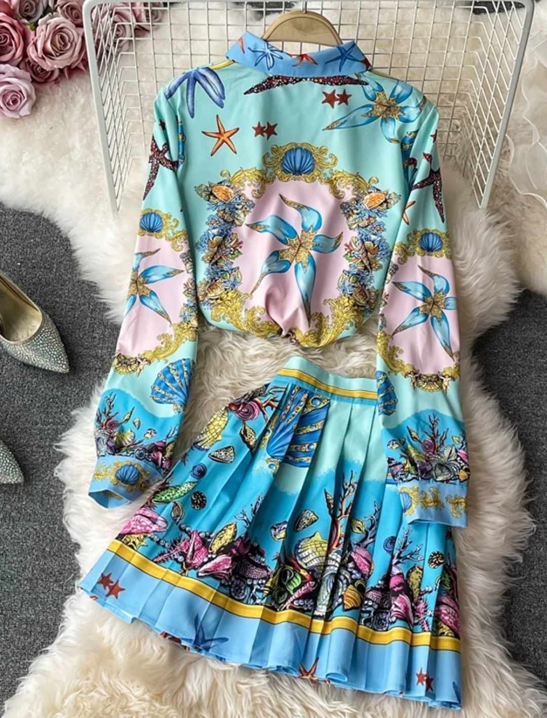 Damski dwuczęściowy komplet bluzka + spódnica morski wzór