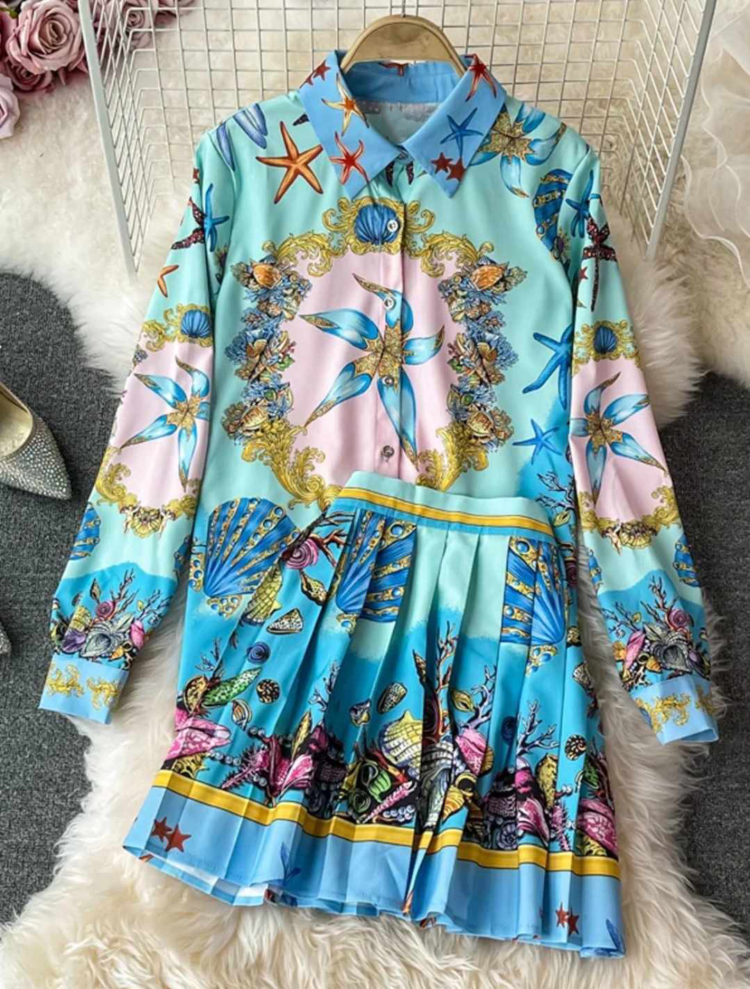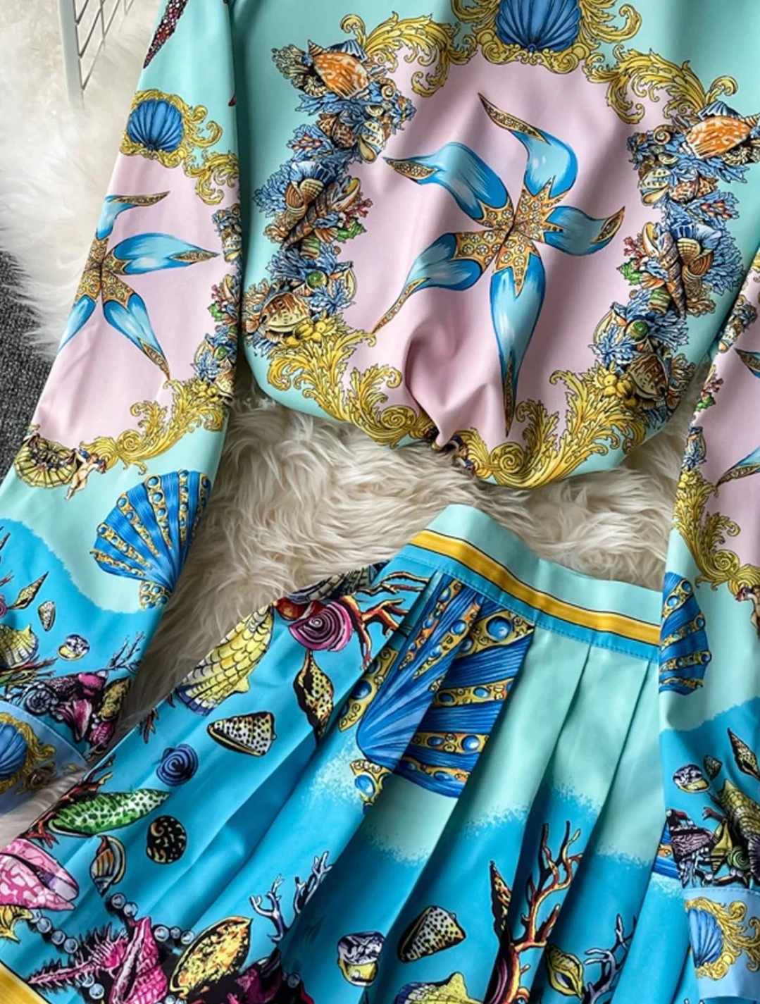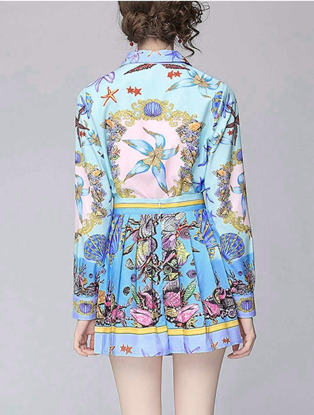 Damski dwuczęściowy komplet bluzka + spódnica morski wzór