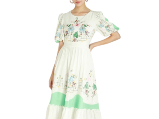 Sukienka w stylu Vintage z Bufiastymi Rękawami