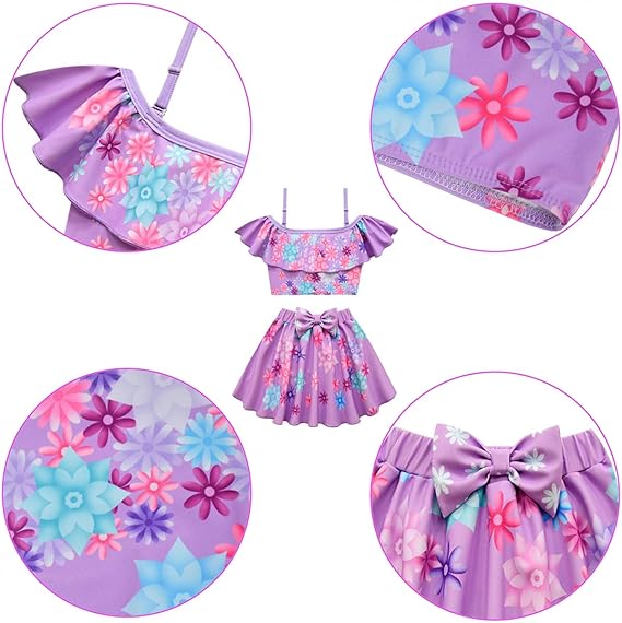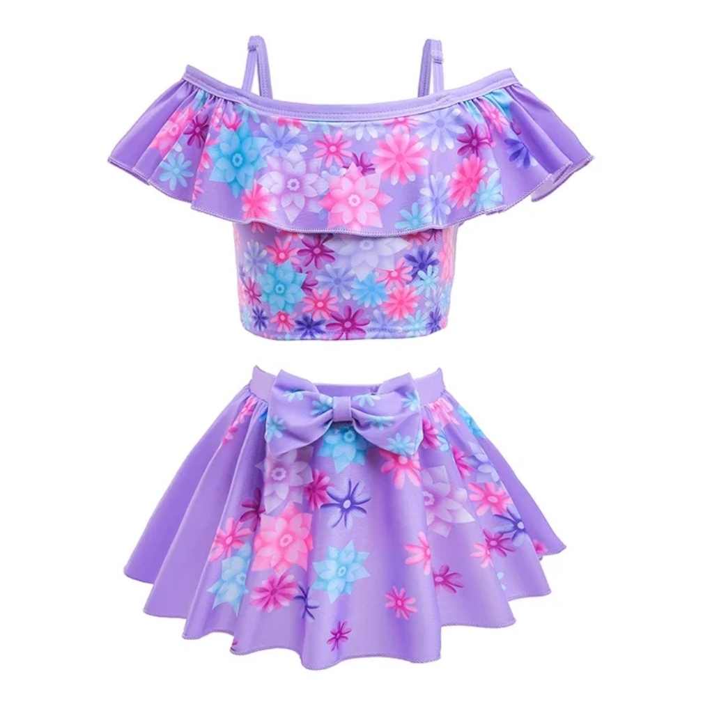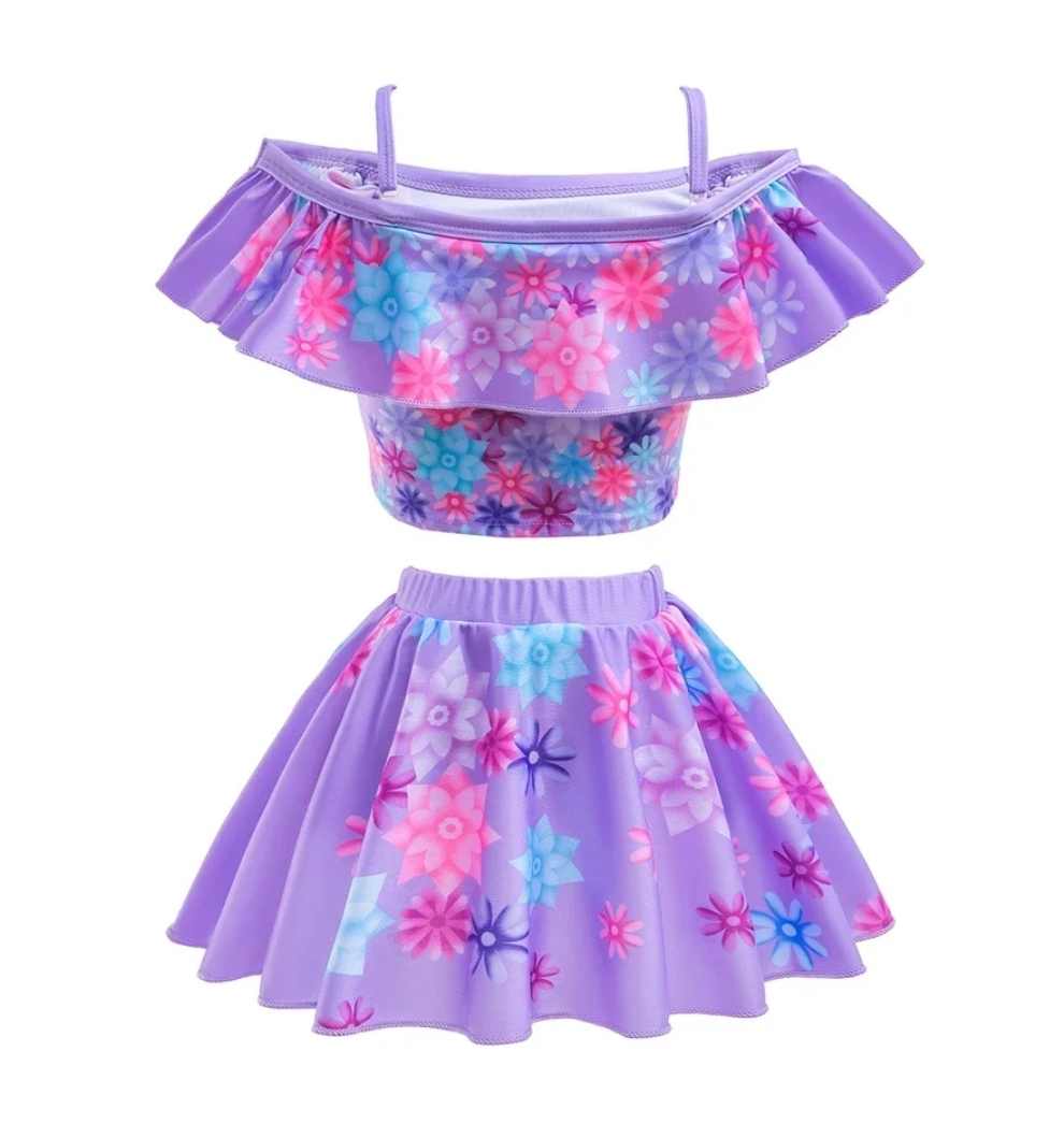 Dziewczęcy dwuczęściowy strój kąpielowy z dodatkami