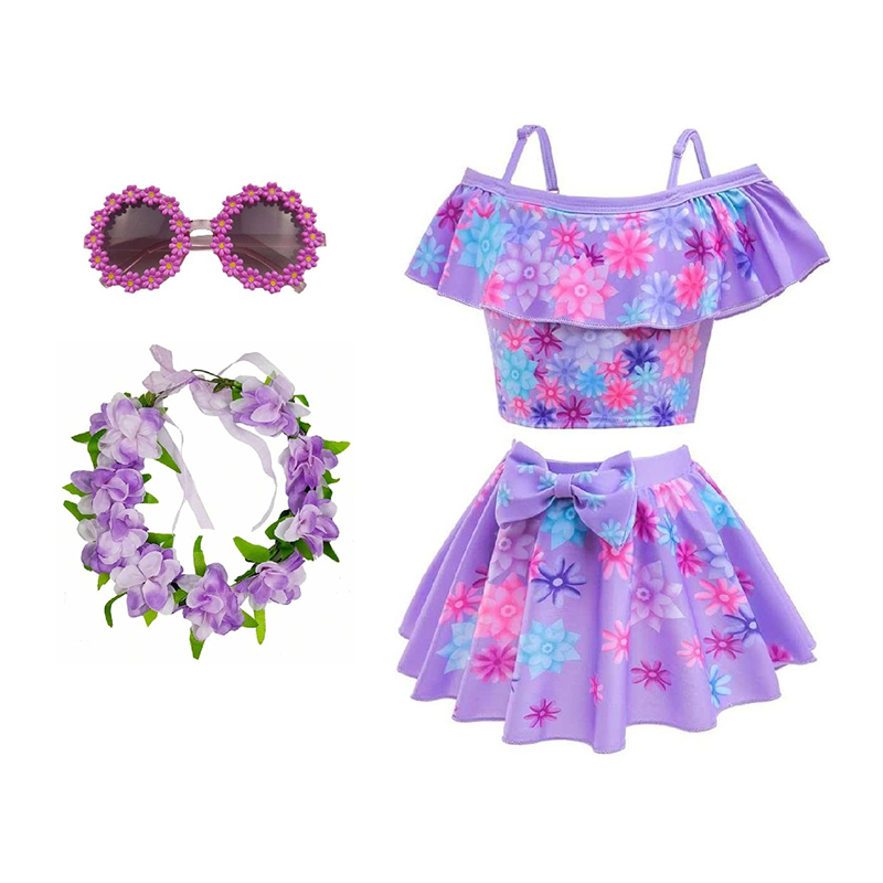 W zestawie: 2-częściowy strój kąpielowy, okulary, wianek na głowę.