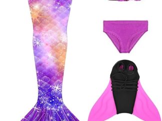 W skład stroju wchodzą ( top syrenki, majteczki, oraz płetwa). Strój kąpielowy wykonany jest z poliestru, szybkoschnący, oddychający, bardzo delikatny w dotyku. Spełnij marzenia Swojego dziecka o byciu syrenką, niech dzięki temu kompletowi poczuję się jak w bajce.