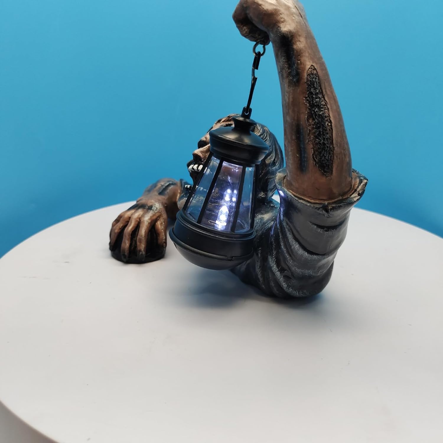Figurka została wykonana z żywicy i jest ręcznie malowana . Jest doskonałą ozdobą ogrodu lub na halloween . Latarka z figurki zasilana jest trzema bateriami guzikowymi . Figurka jest bardzo dobrej jakości odporna na warunki atmosferyczne oraz odporna na wyblaknięcie .