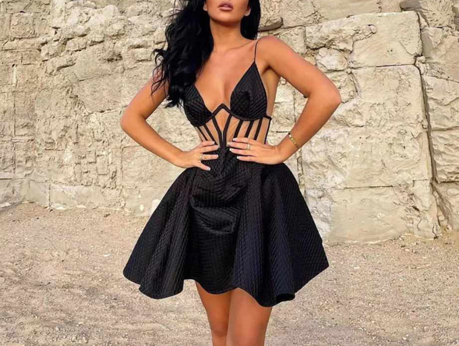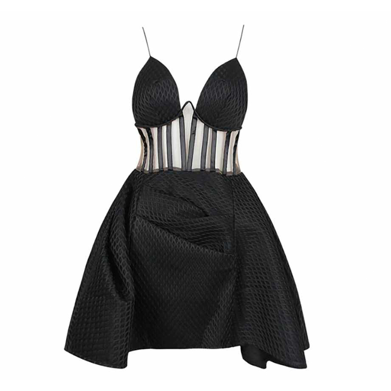 Seksowna czarna gorsetowa sukienka mini na ramiączkach z siateczkową wstawką