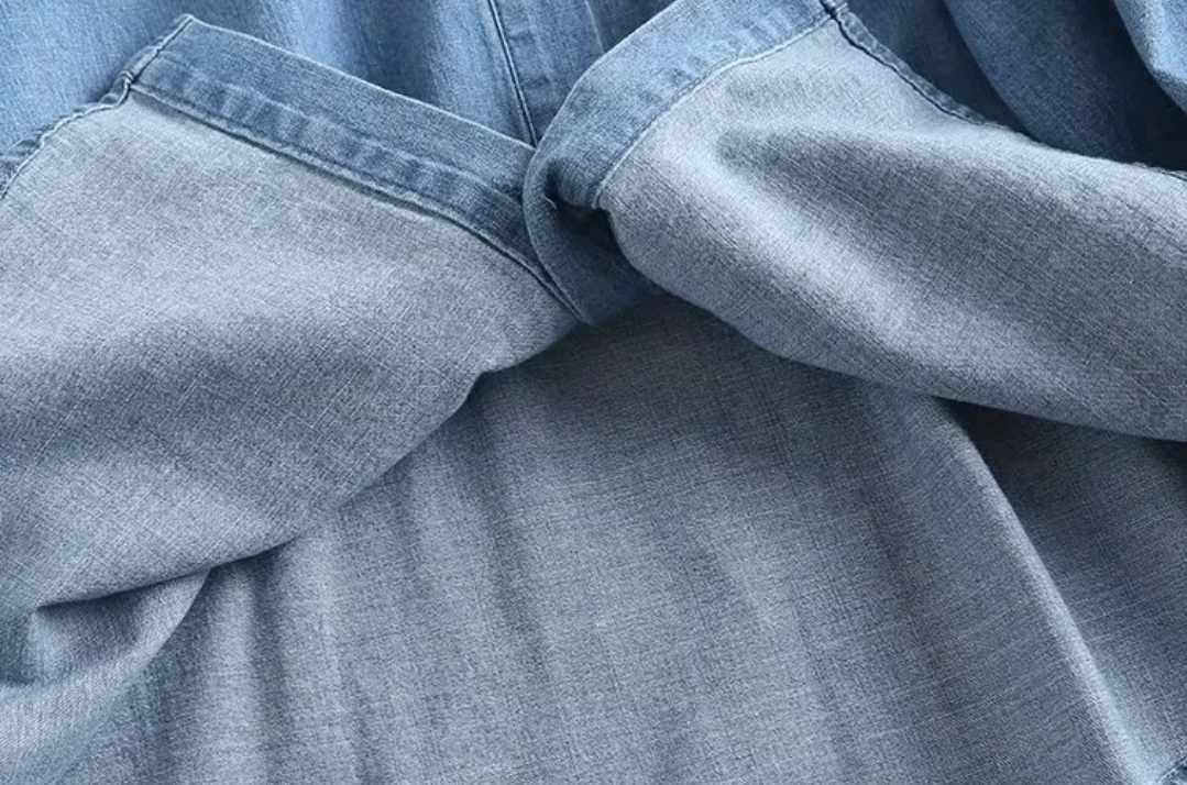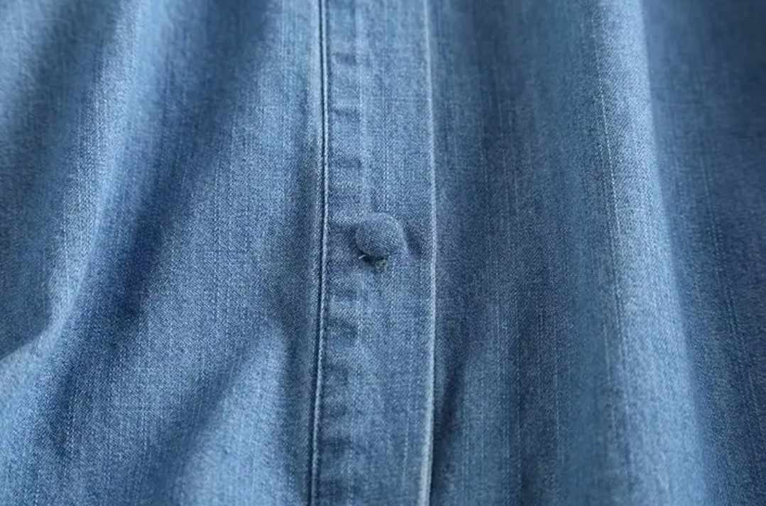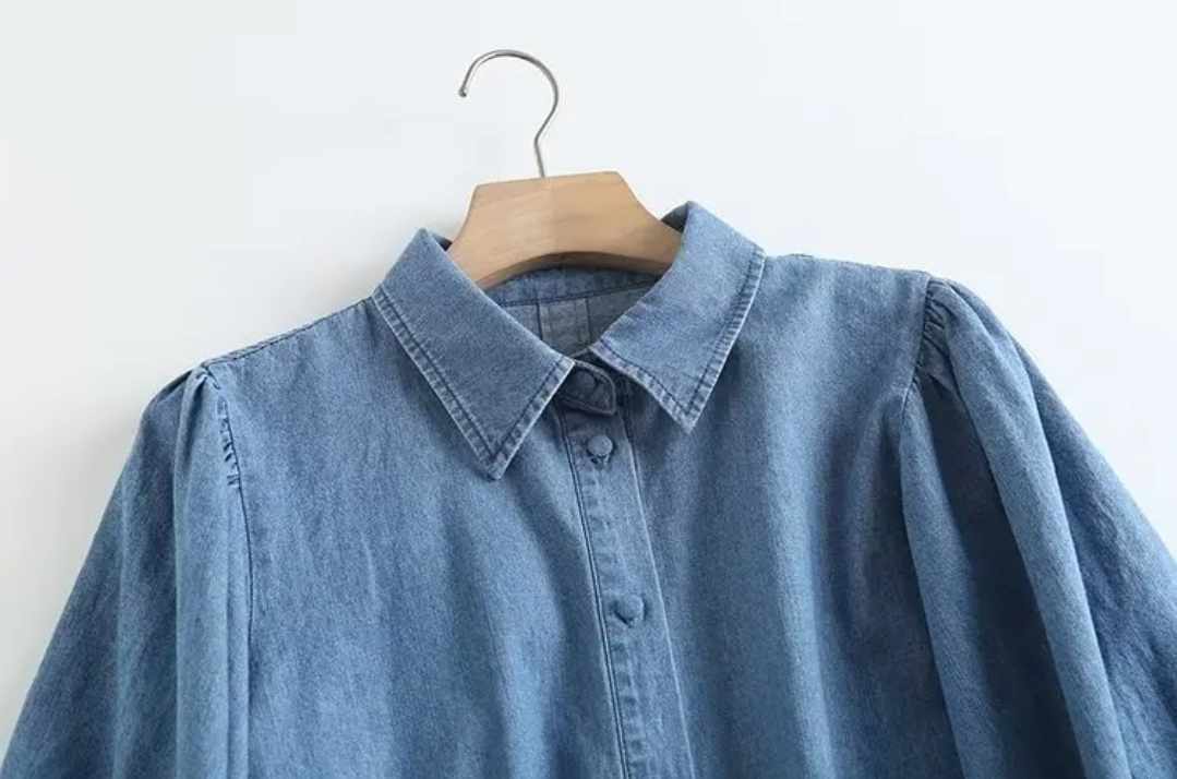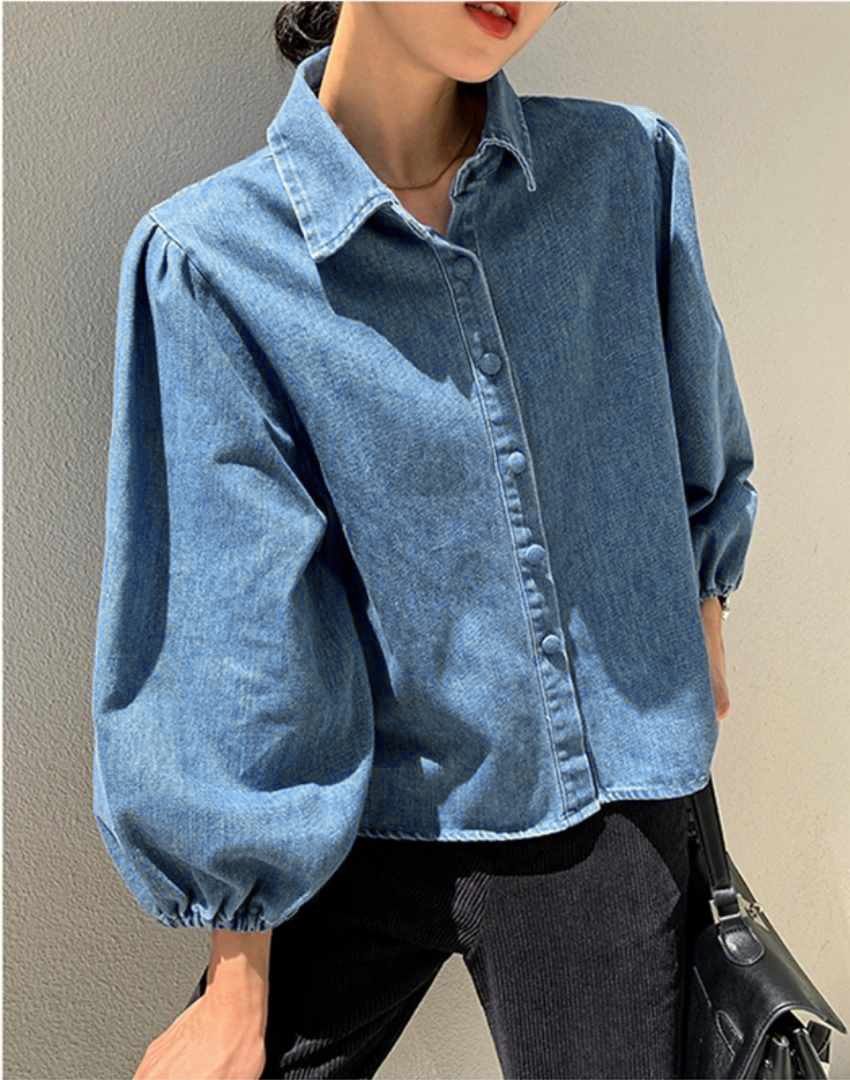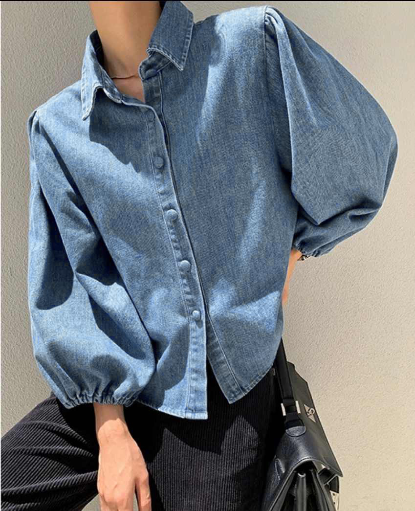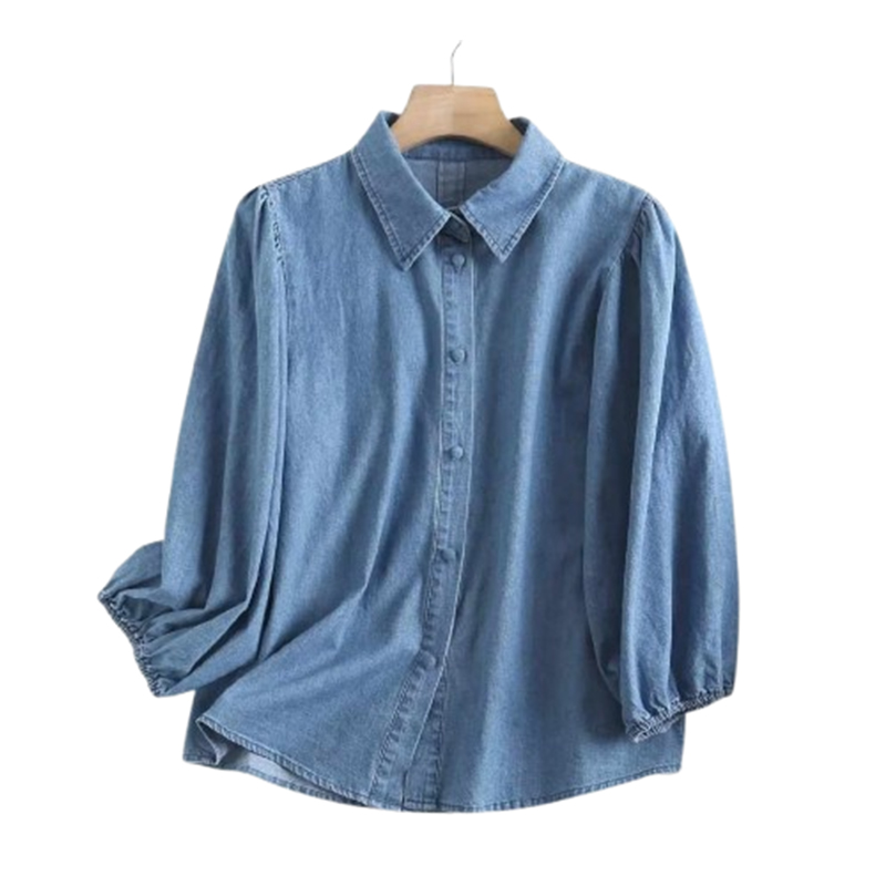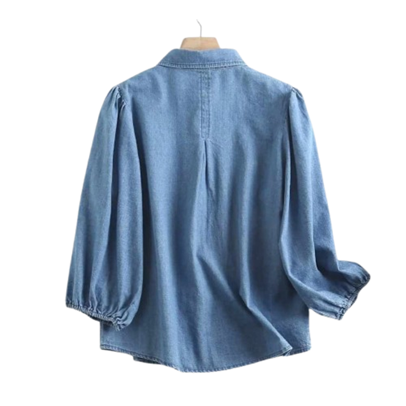 Damska luźna koszula jeansowa z bufiastym 7/8 rękawem
