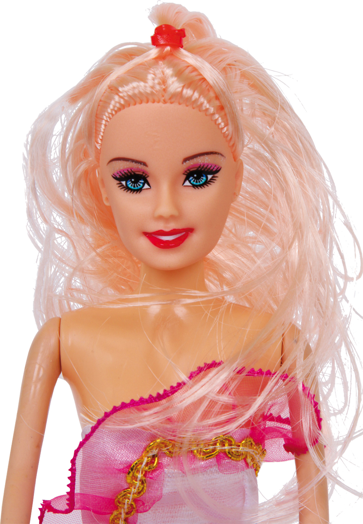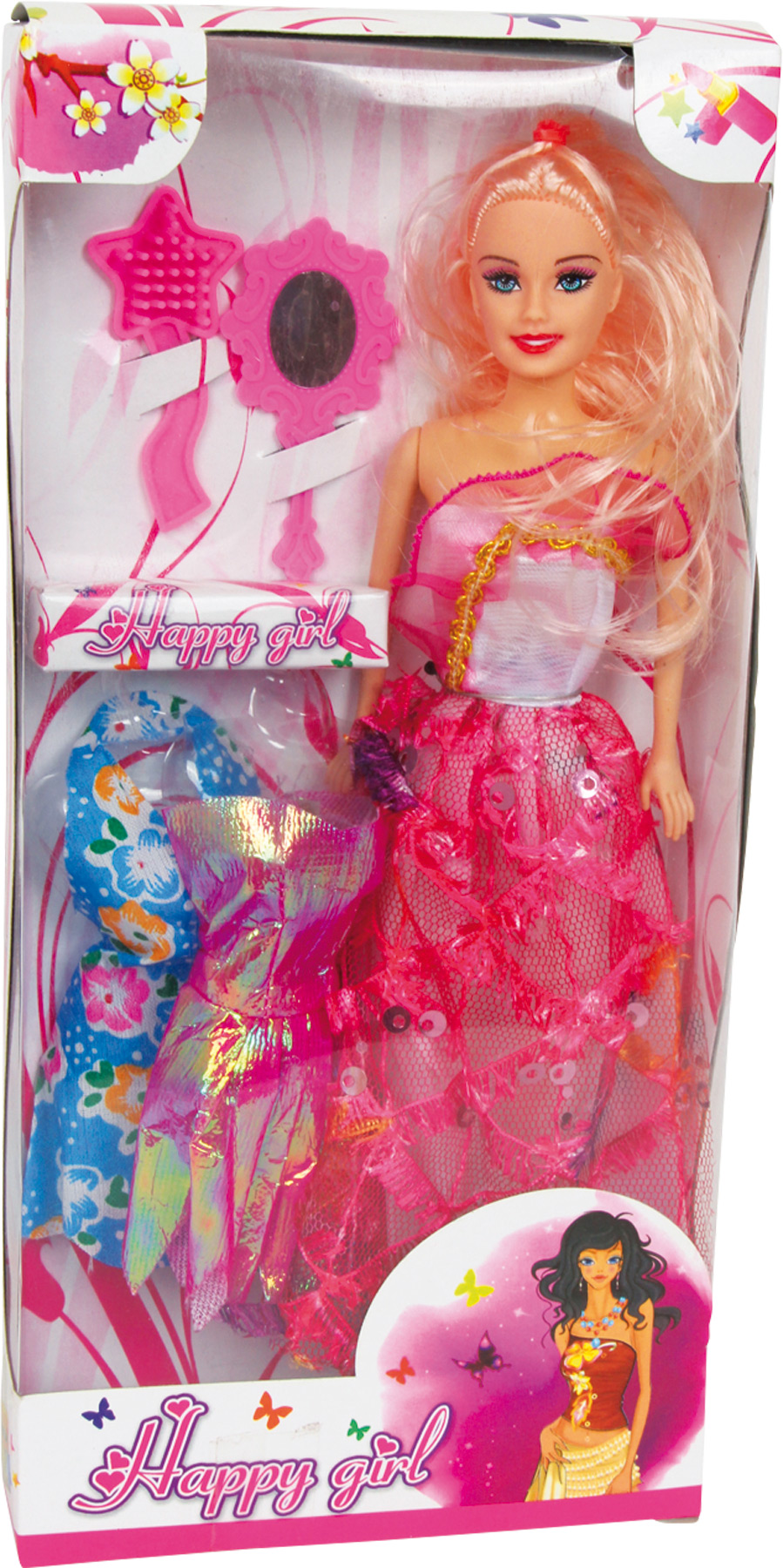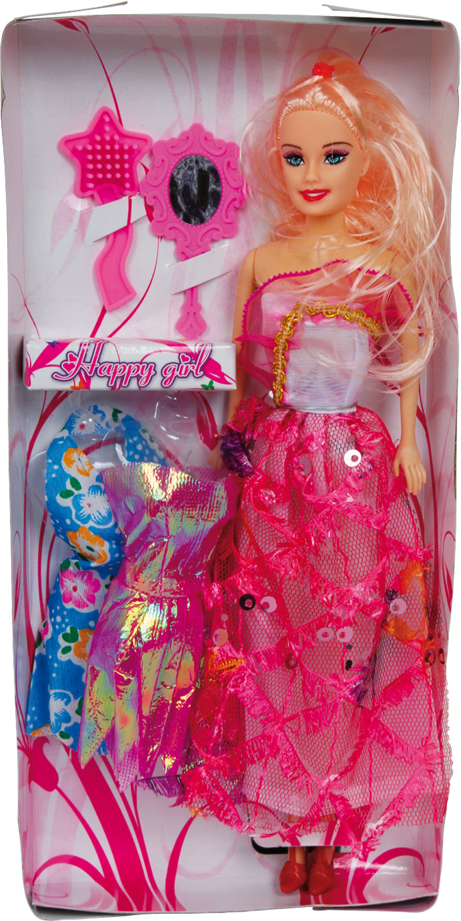 Ta piękna blond dama ma 3 kolorowe i modne sukienki, szczotkę do włosów i lusterko. Umiejętności motoryczne będą ćwiczone w zabawny sposób!