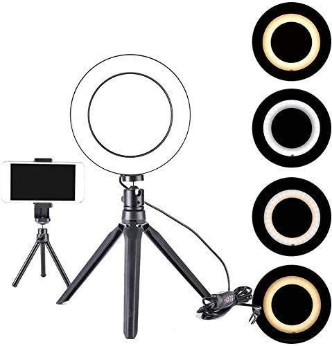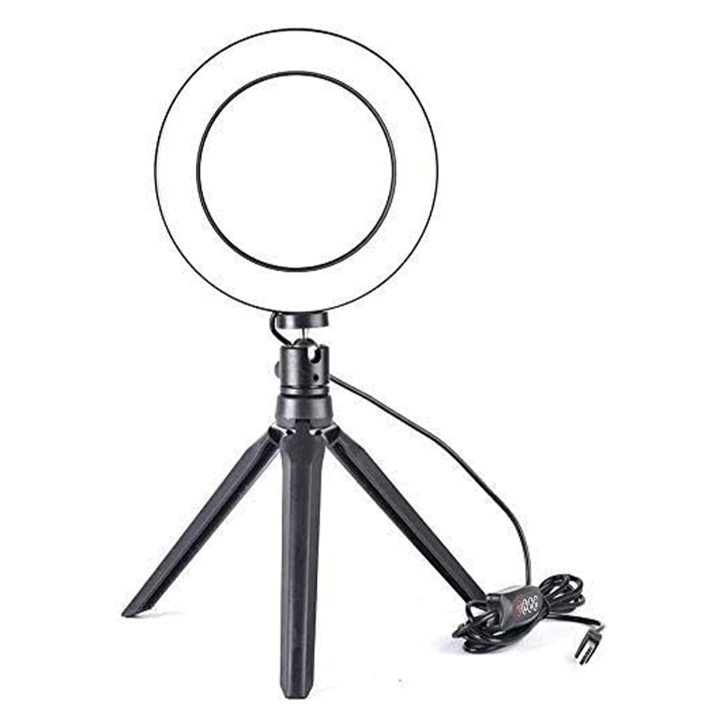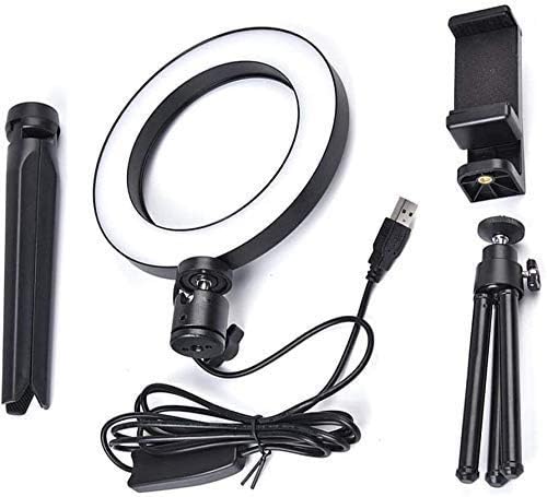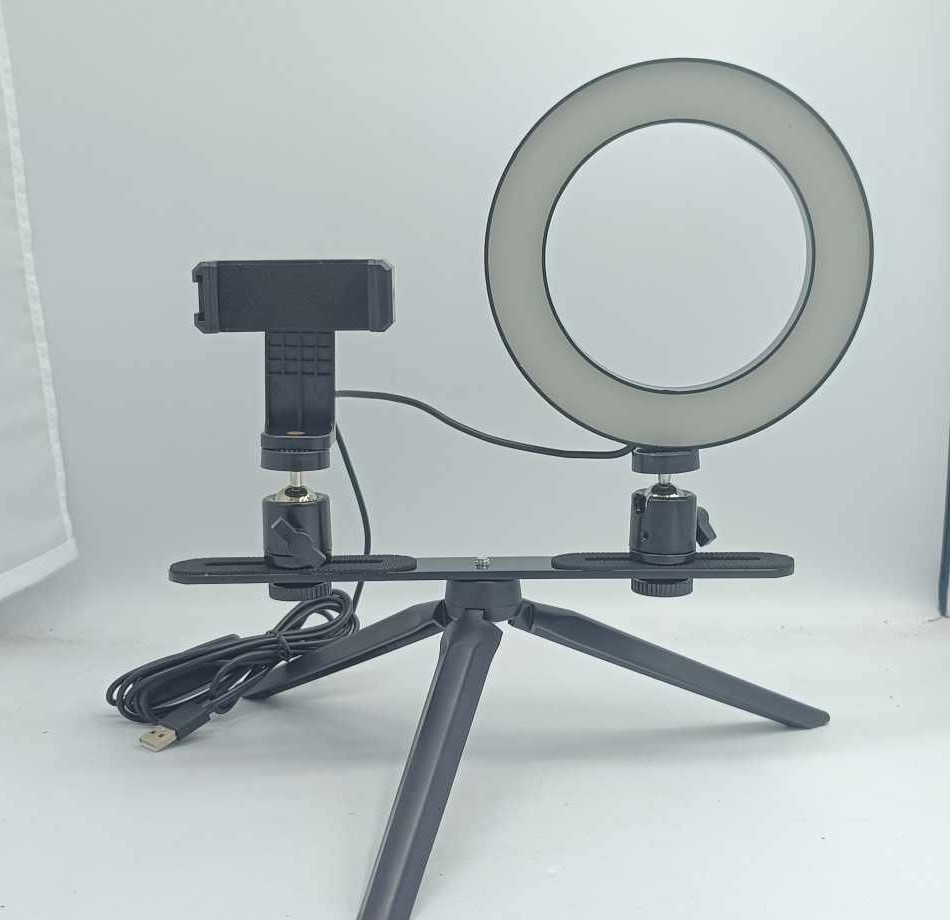 Lampa pierścieniowa o dużej mocy, wyposażona w podręczny statyw bardzo przydatny do selfie, czy pracy przy komputerze.