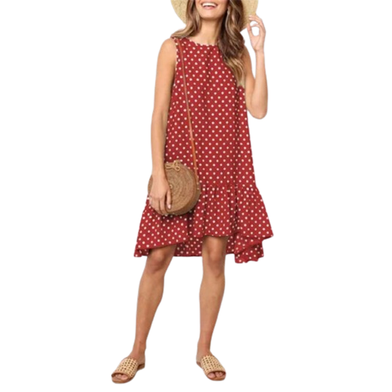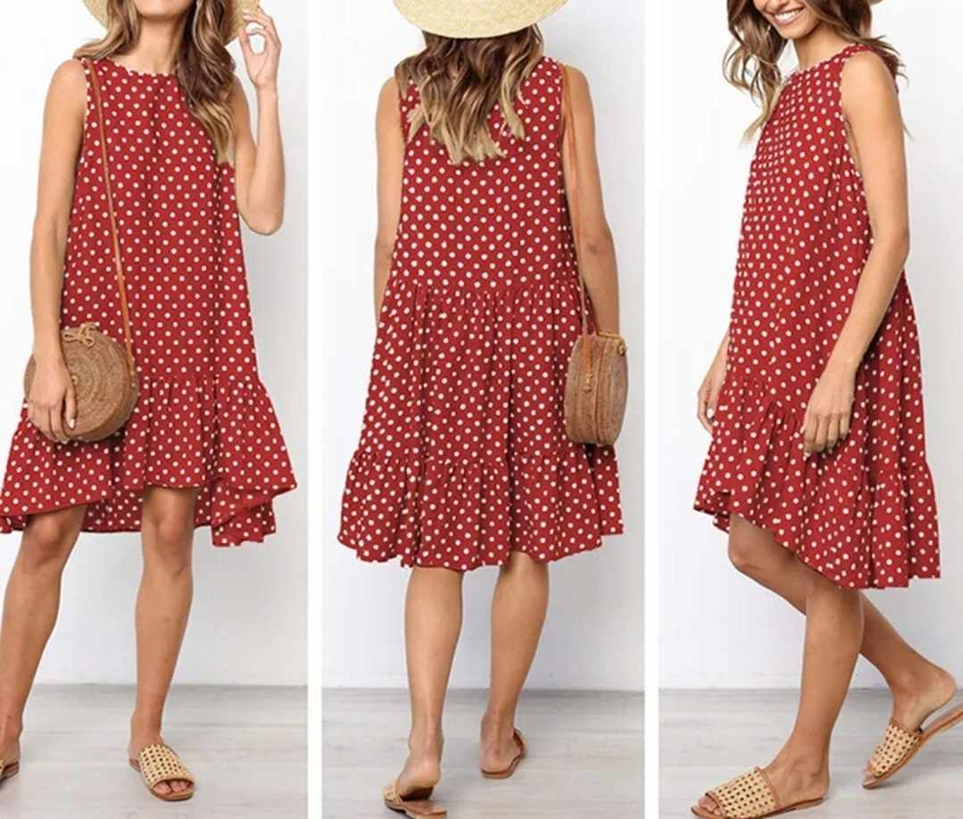 Damska letnia luźna sukienka w groszki z falbanką