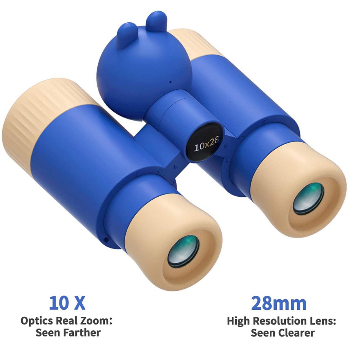 • Profesjonalne prawdziwe lornetki: chociaż ta zabawkowa lornetka jest przeznaczona dla dzieci, jej parametry optyczne są nie mniejsze niż w przypadku lornetek wysokiej rozdzielczości dla dorosłych. Dzięki 10-krotnemu powiększeniu i aperturze obiektywu 28 mm,  lornetka może skupić się na obiektach oddalonych o 1000 metrów.