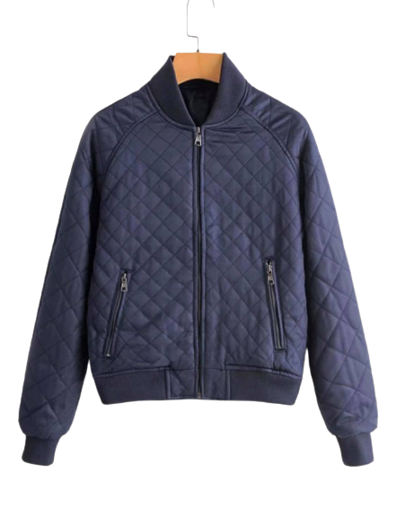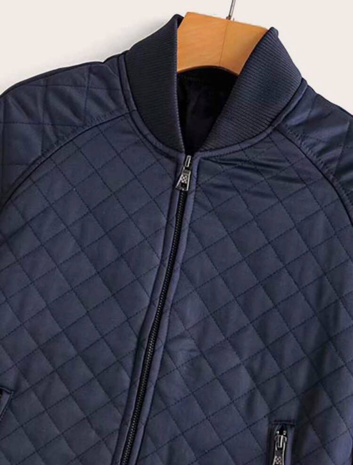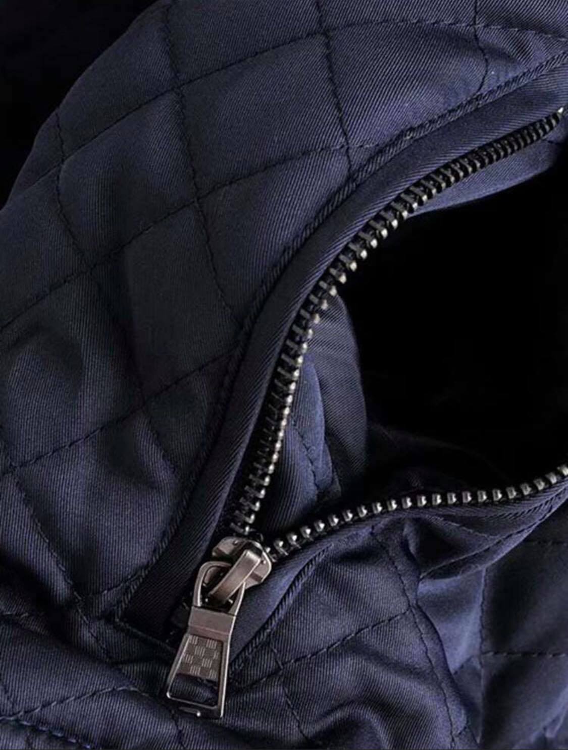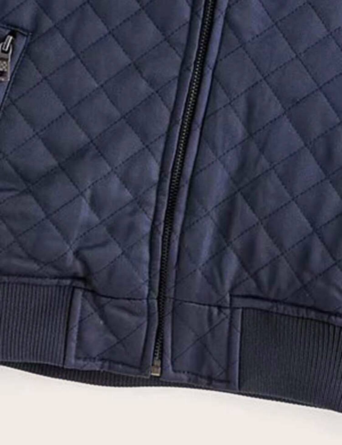 Męska granatowa kurtka pikowana, skórzana