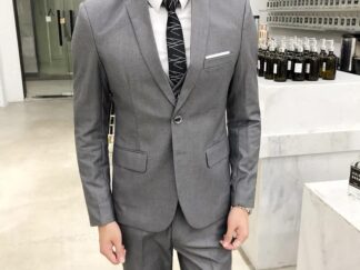 Męski 3-częściowy elegancki garnitur w kolorze CIEMNO-SZARYM!