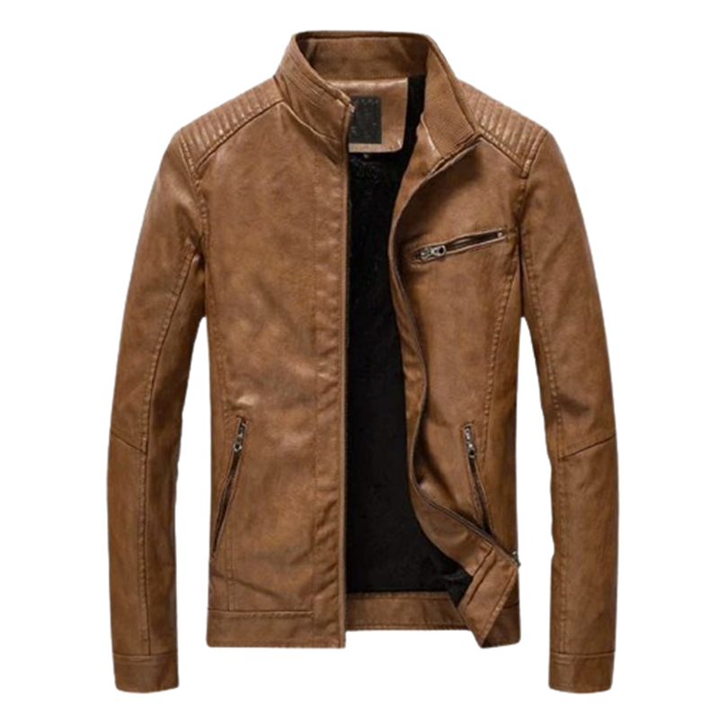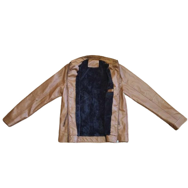Ocieplana brązowa kurtka skórzana ze stójką