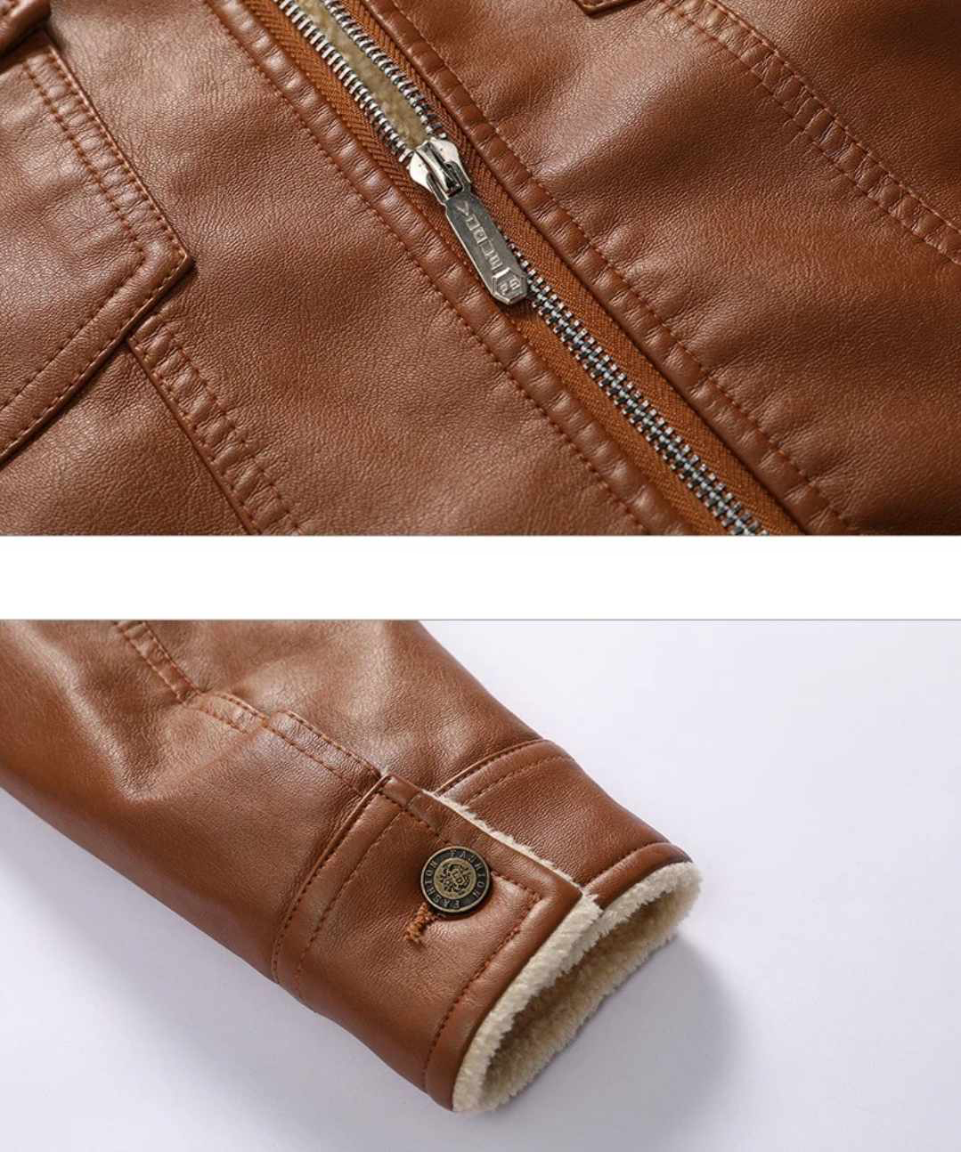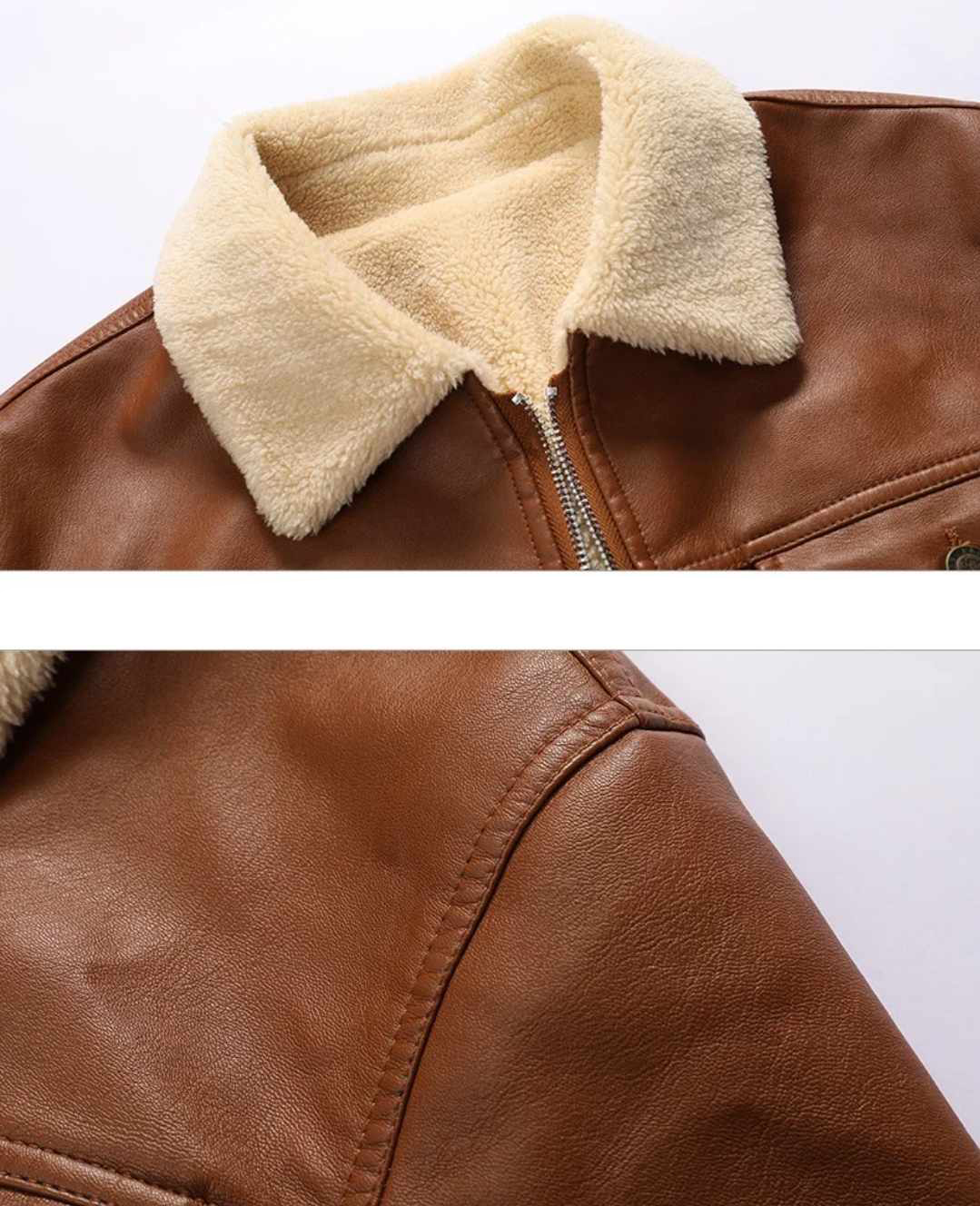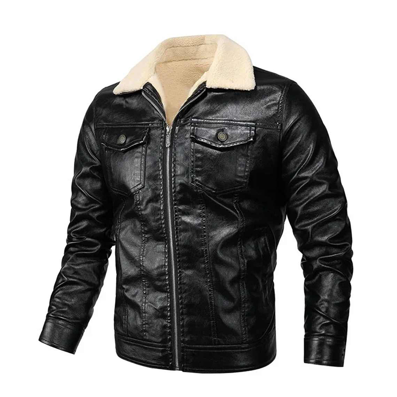 Męska czarna kurtka skórzana podszyta krótkim pluszem
