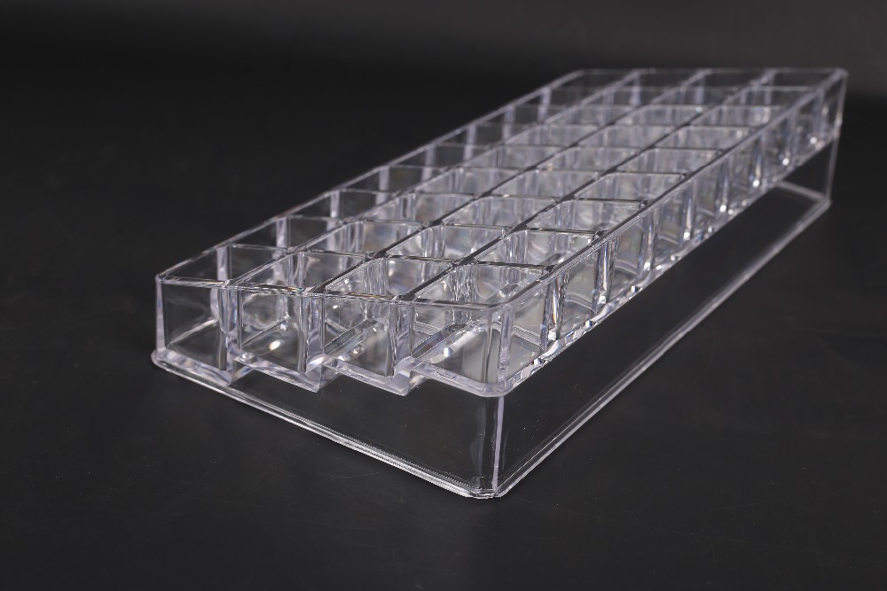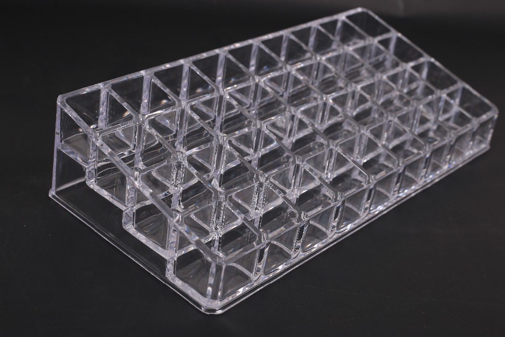 Organizer wykonany został z przezroczystego akrylu z gładko zakończonymi krawędziami, więc będzie pasował do każdego wystroju wnętrz