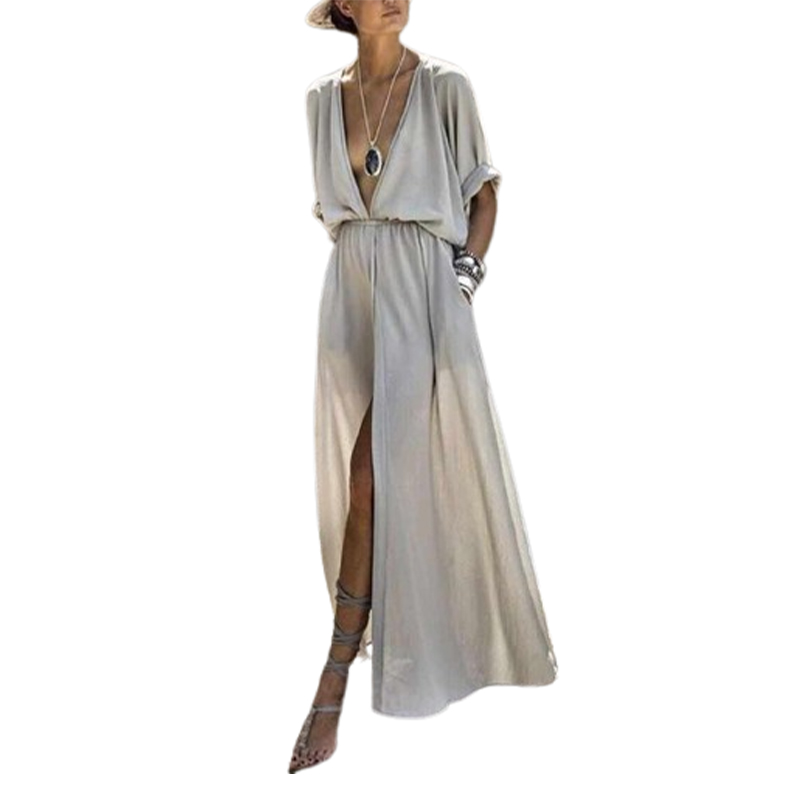 Pareo szyfonowa luźna szara narzuta plażowa na strój kąpielowy