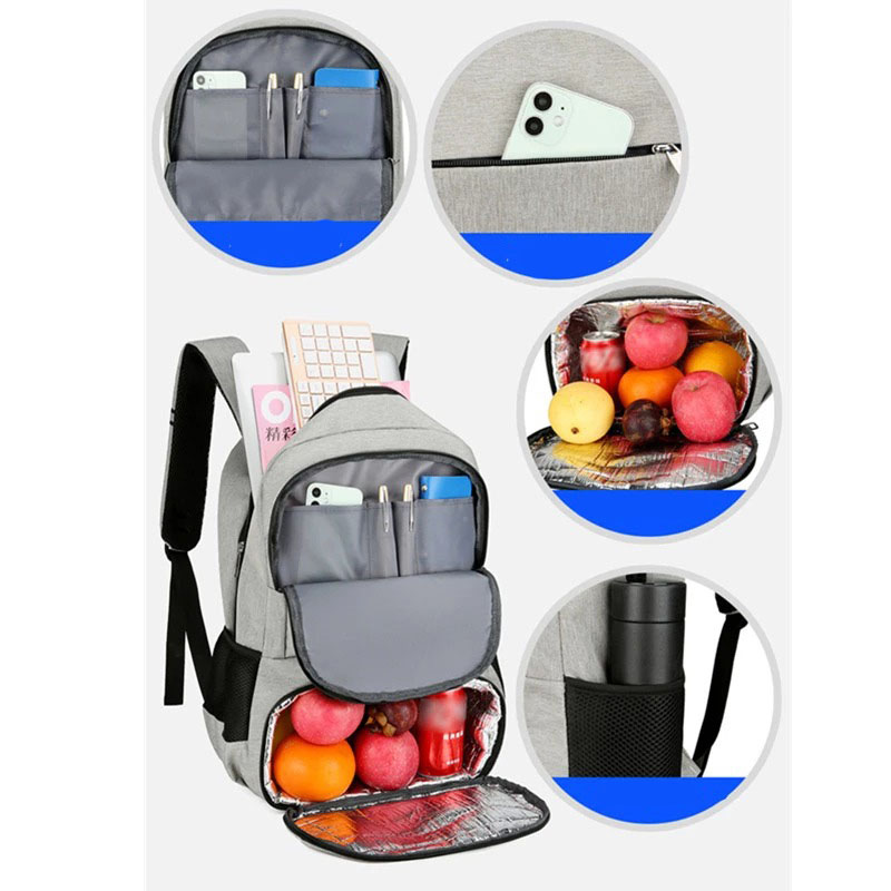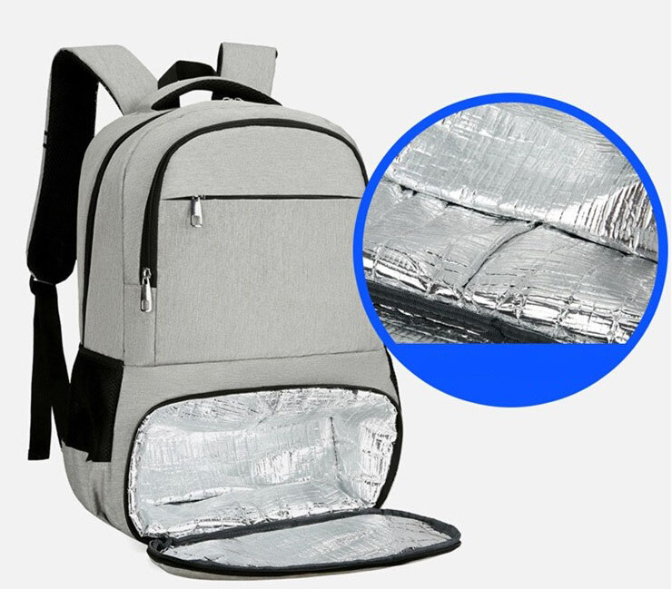 • Przednia dolna kieszeń wyposażona jest w aluminiową wyściółkę do przenoszenia żywności
