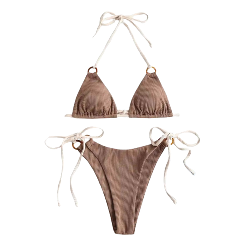 Damski dwuczęściowy prążkowany strój kąpielowy