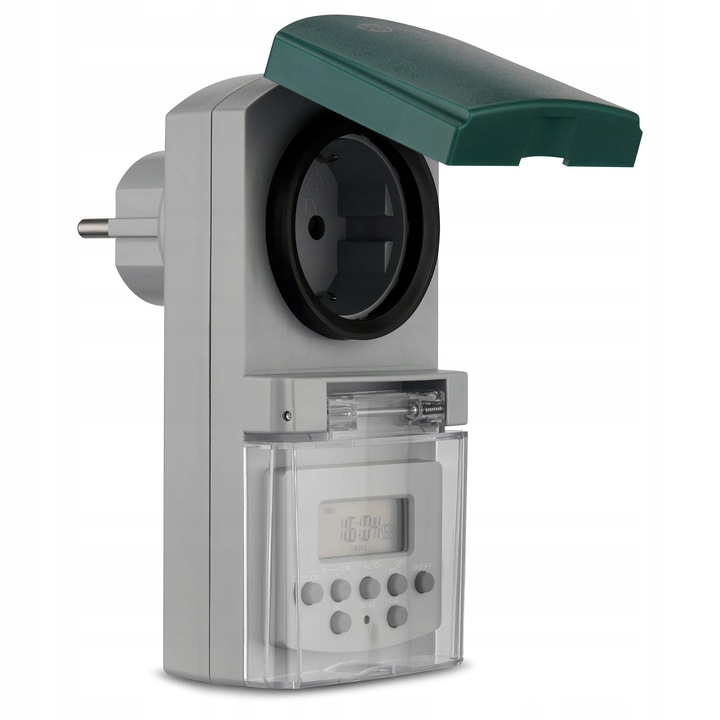 - Zegar cyfrowy do użytku na zewnątrz do automatycznego przełączania urządzeń elektronicznych. Wygodnie steruj np. światłami za pomocą funkcji odliczania, jeśli nie można ustawić stałego czasu