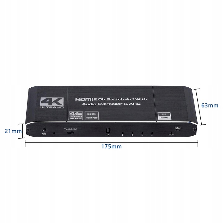 Przełącznik HDMI 2.0b 4×1 z ekstraktorem audio ARC