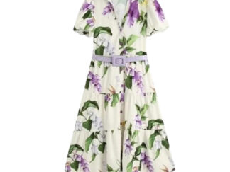 Sukienka wzorzysta midi plisowana z 3/4 rękawem