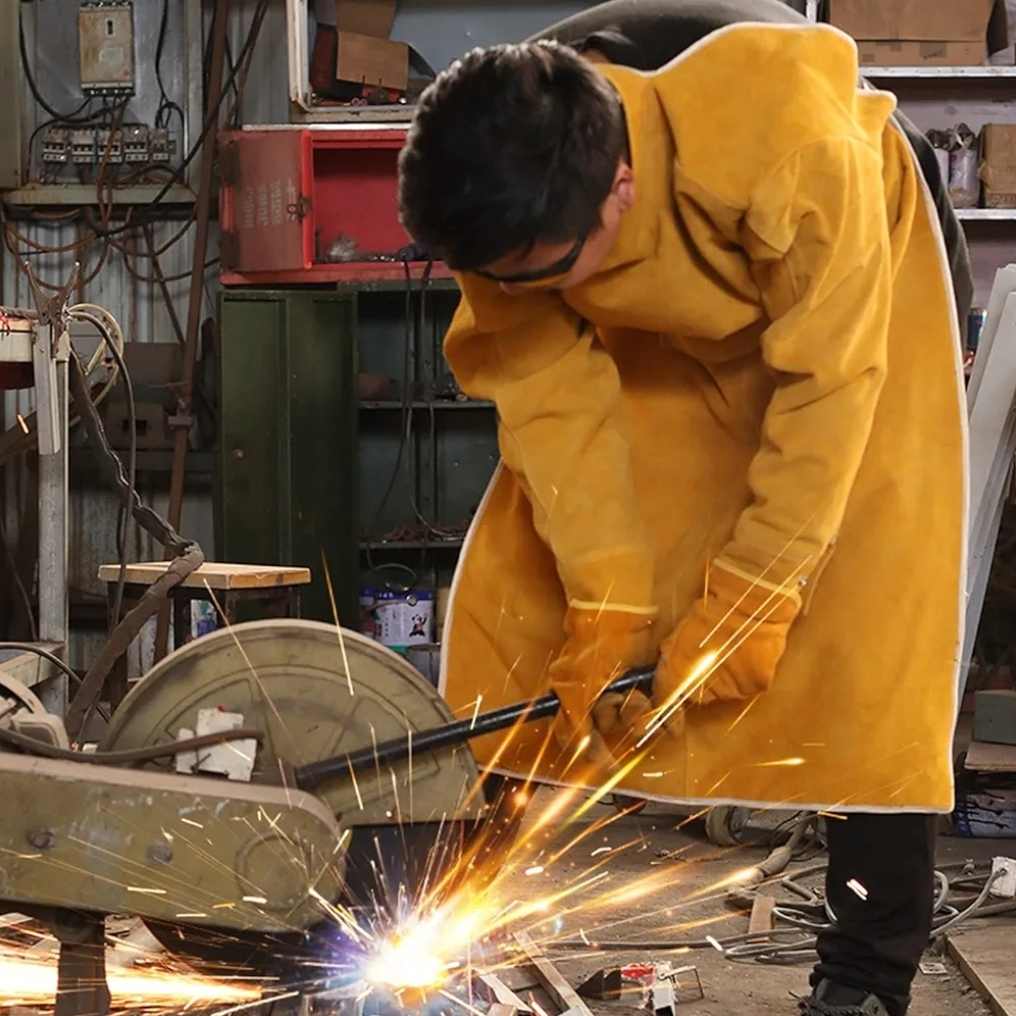 • Noszone na odzieży, aby chronić ciało i ramiona przed iskrami i odpryskami, wykonane z ognioodpornej skóry bydlęcej dla ochrony i trwałości