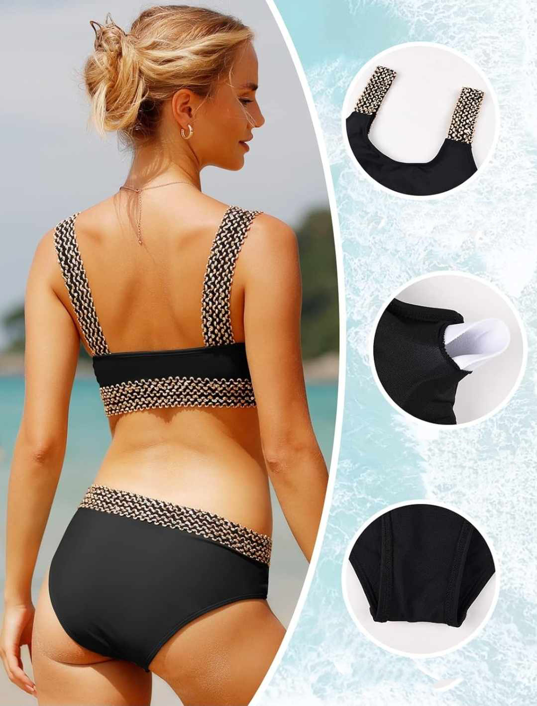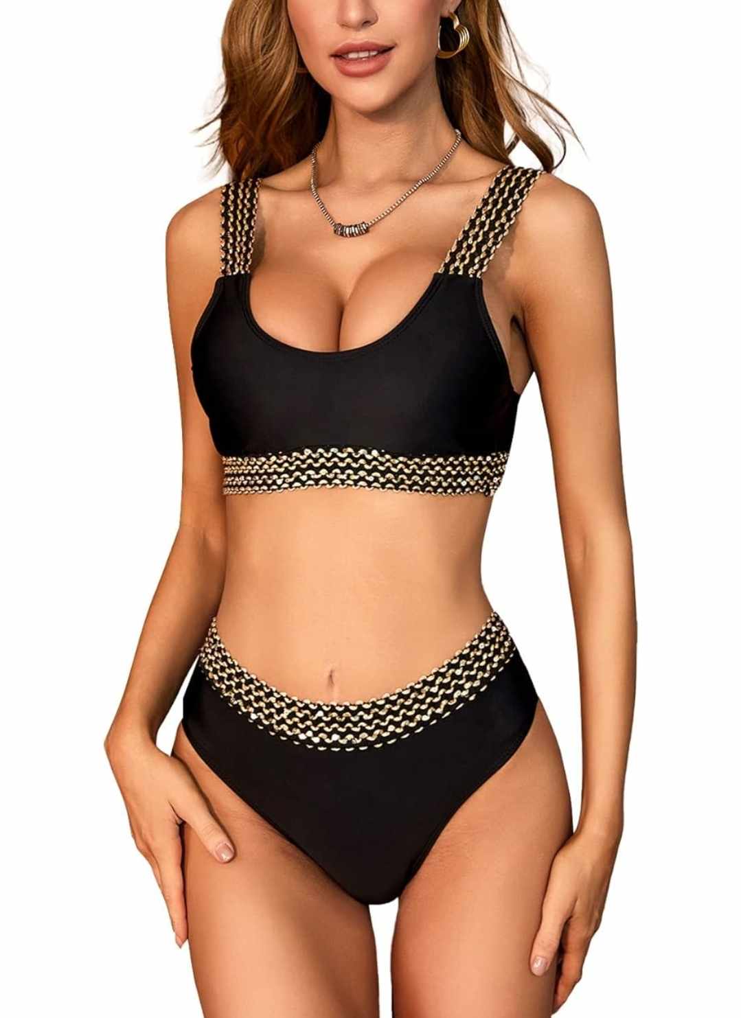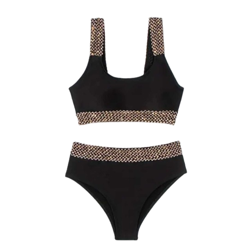 Strój kąpielowy czarny ze złotym zdobieniem z cekinami