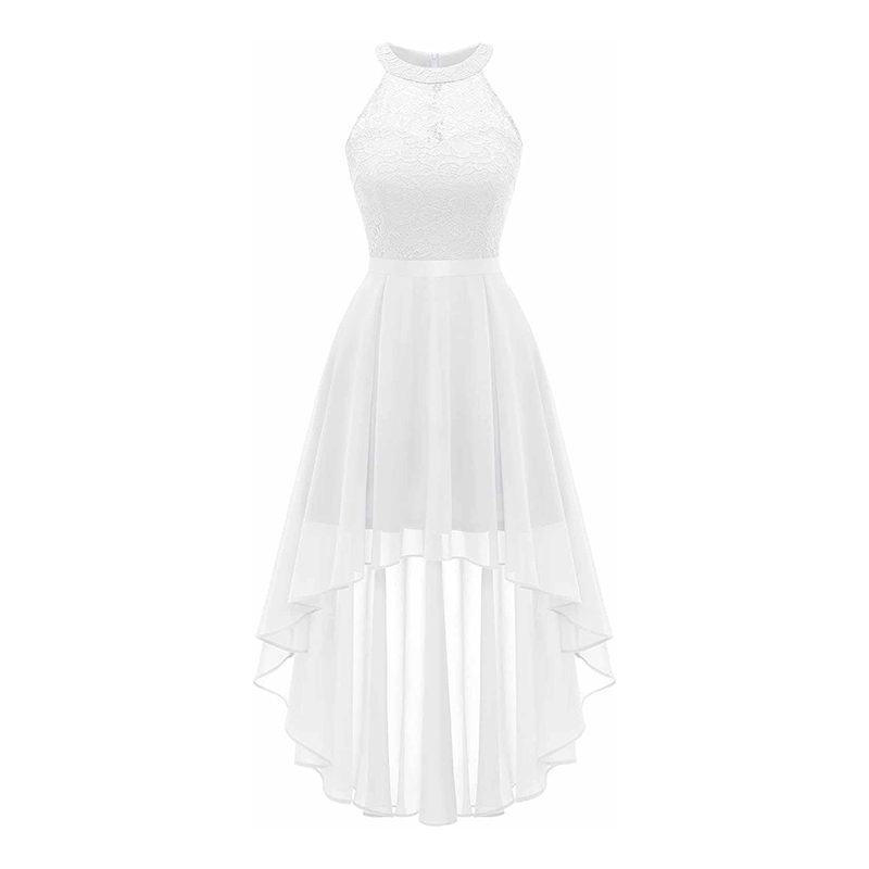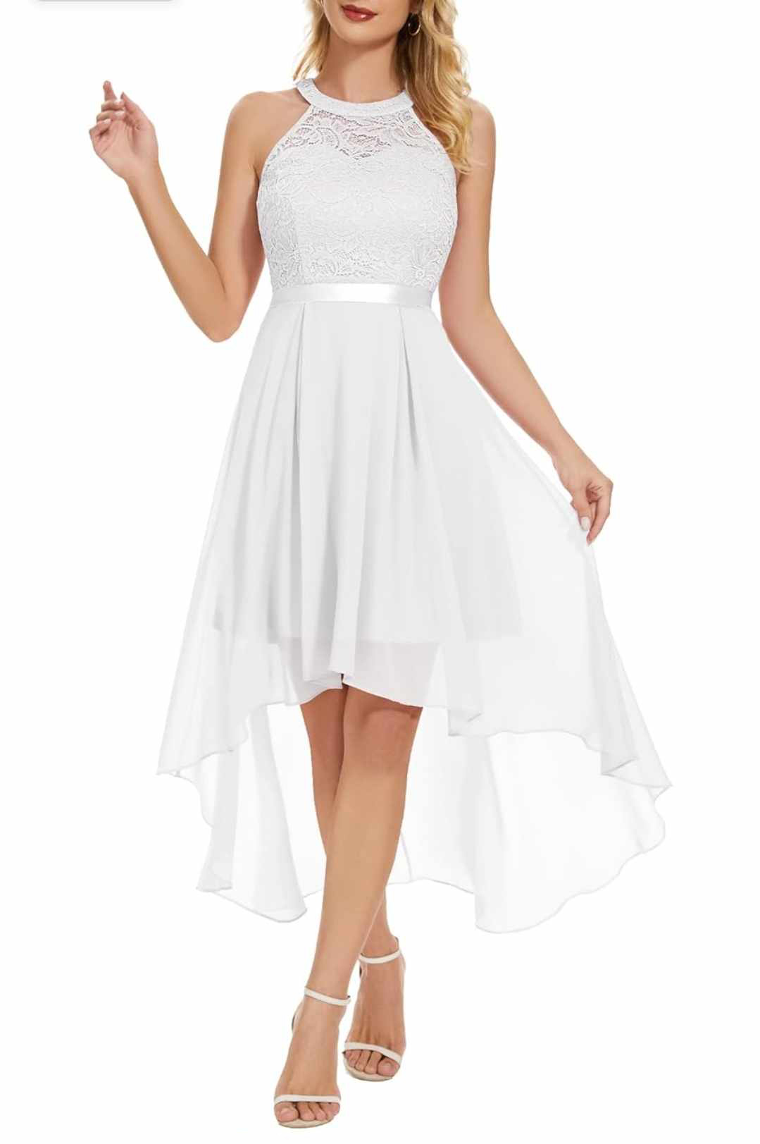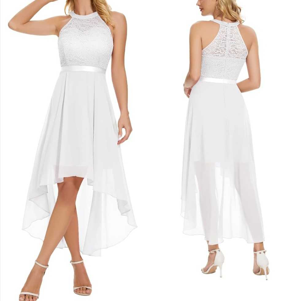 Biała szyfonowa sukienka asymetryczna z koronką dłuższy tył