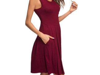 WZORZYSTA SUKIENKA DAMSKA PLISOWANA Z KIESZENIAMI