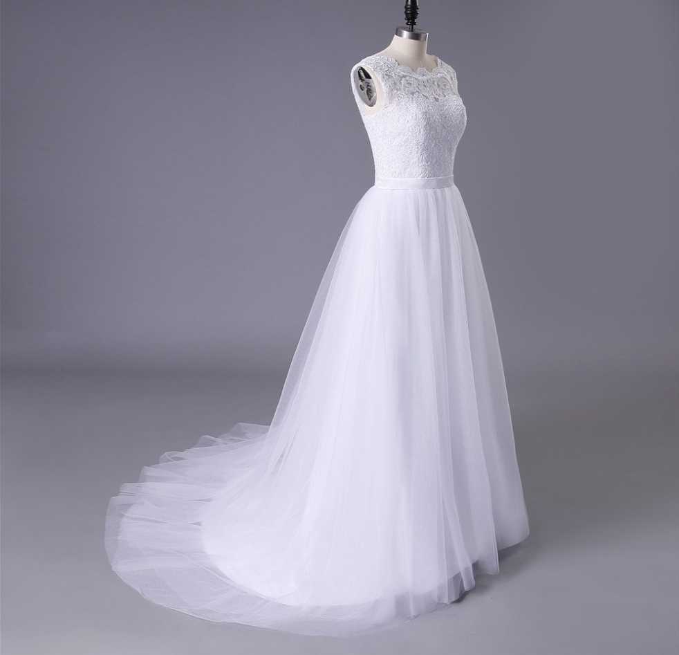 Suknia ślubna tiulowa z delikatnym trenem rozmiar S