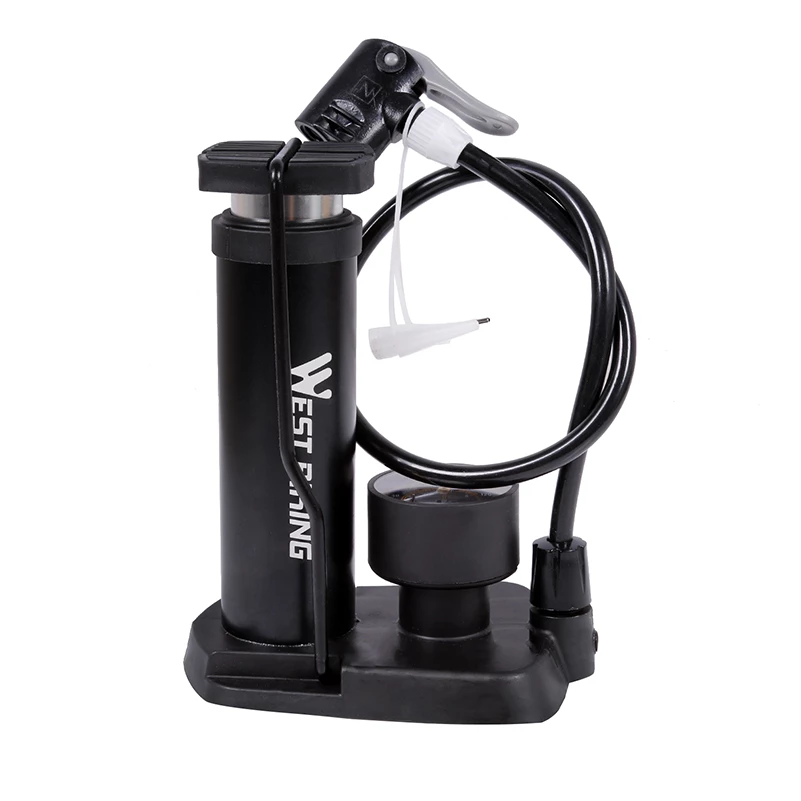Nowa pompka nożna z miernikiem ciśnienia oraz końcówkami umożliwiającymi napompowanie również materaca czy piłki.  Końcówka samochodowa.