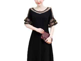 Wieczorowa suknia z zabudowanym dekoltem z kokardą