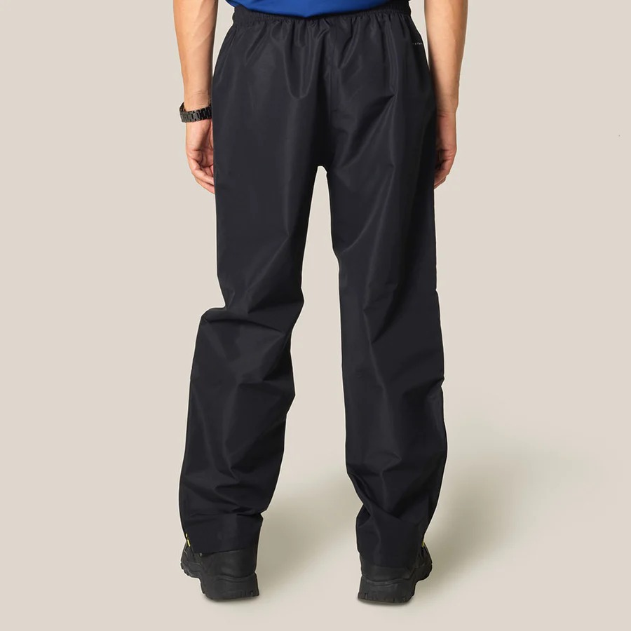 Te spodnie przeciwdeszczowe mają elastyczną talię i boczne zamki dla dodatkowego komfortu.