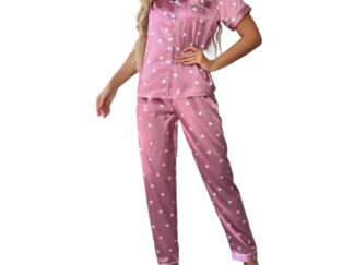 Damska satynowa piżama różowa w serduszka rozmiar S